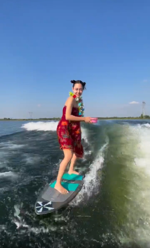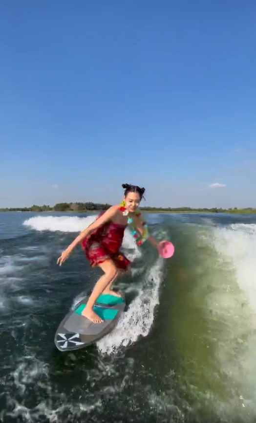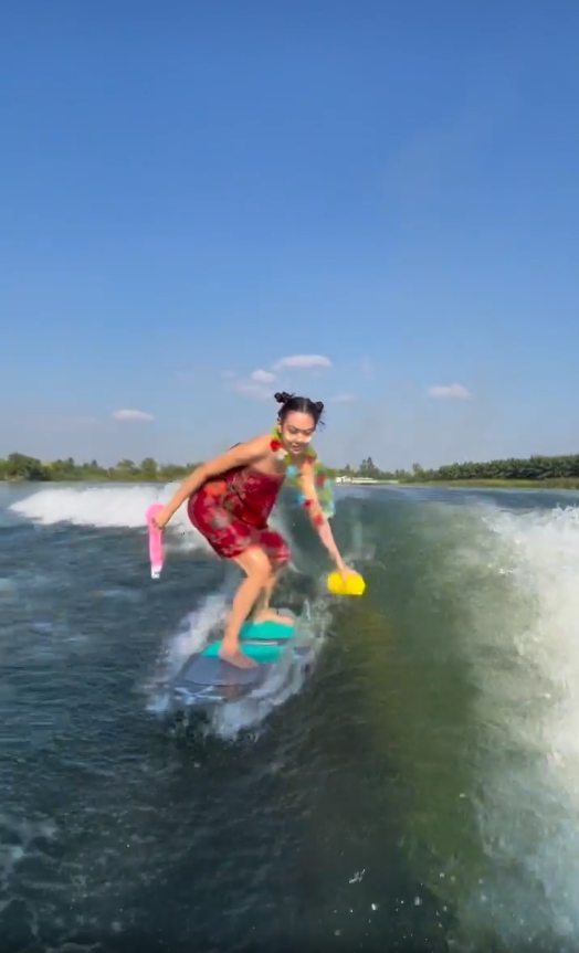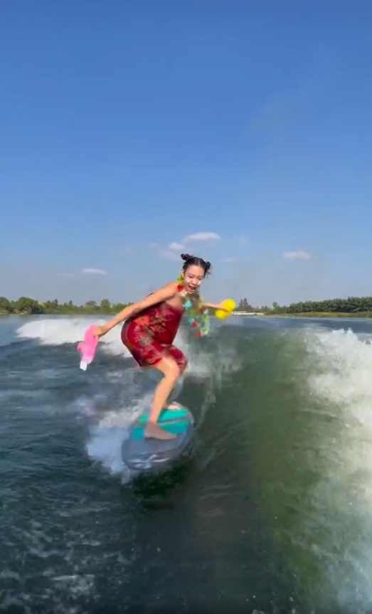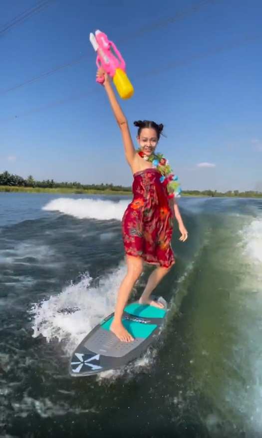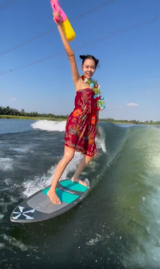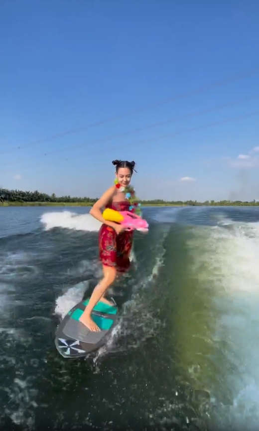 ไม่ตกเทรนด์! “แซมมี่ เคาวเวลล์” ต้อนรับสงกรานต์ นุ่งกระโจมอกถือปืนฉีดน้ำ เล่นเซิร์ฟบอร์ด