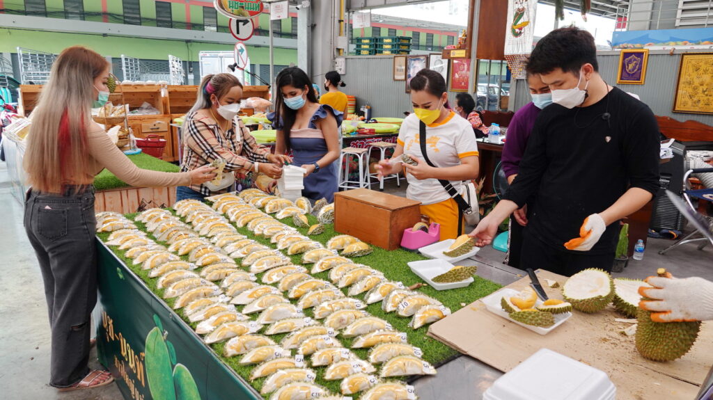 “ตลาดสี่มุมเมือง” ขาย “ทุเรียน” พูละ 5 บาท รับสงกรานต์