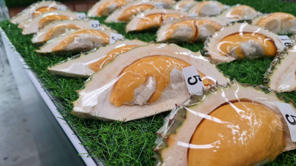 หากซื้อแล้วพบทุเรียนอ่อนยินดีคืนเงินเต็มจำนวนหรือเปลี่ยนลูกใหม่ทันที เปิดศักราชฉลองสงกรานต์ตั้งแต่วันที่ 12-15 เมษายน 12.00-21.00 น. โดยเริ่มต้นขายทุเรียนเริ่มต้นพูละ 5 บาท 4 วันเท่านั้น มีทั้งพวงมณี ชะนี หมอนทอง จำกัดซื้อได้ไม่เกิน 20 พูต่อคน พิเศษ รับทุเรียนทอดกรอบ 1 ถุงขนาด 100 กรัมเพิ่มทันทีเมื่อซื้อทุเรียนครบ 2,000 บาท