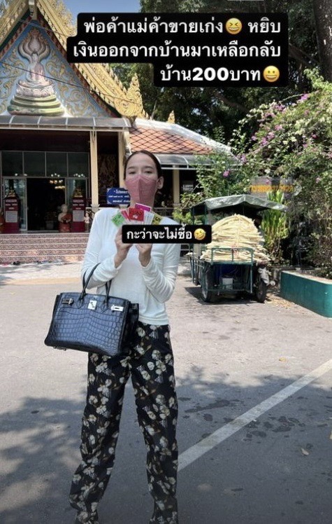 แต่งานนี้บอกเลยว่าพีกกว่านั้น เมื่อเจ้าตัวโพสต์ไอจีสตอรี่ถือลอตเตอรี่ในมือหลายใบ พร้อมกับบอกว่า “พ่อค้าแม่ค้าขายเก่ง หยิบเงินออกจากบ้านมาเหลือกลับบ้าน 200 บาท กะว่าจะไม่ซื้อ”
