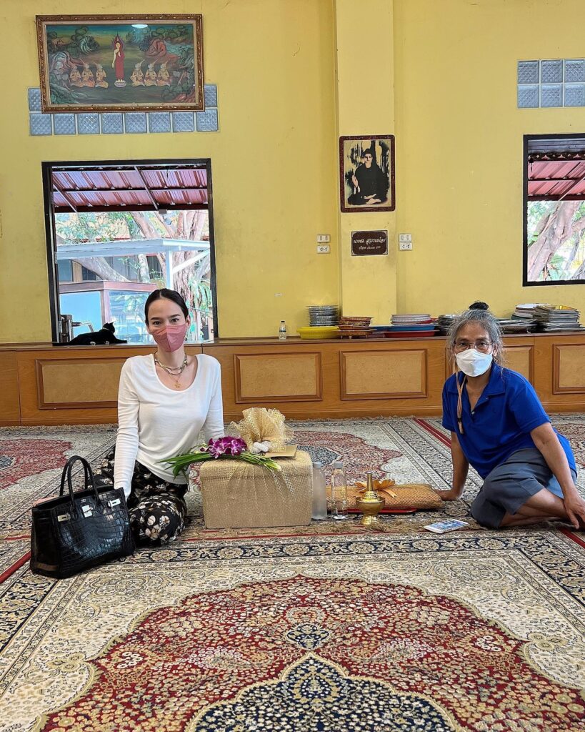 ซูมให้ไว! “อั้ม พัชราภา” เข้าวัดทำบุญ แถมอุดหนุนแม่ค้าลอตเตอรี่ ชุดใหญ่ไฟกระพริบ