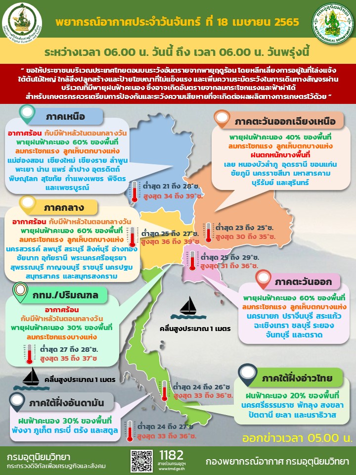 กรมอุตุนิยมวิทยาจะออกประกาศฉบับต่อไปใน วันที่ 18 เมษายน พ.ศ. 2565 เวลา 17.00 น.