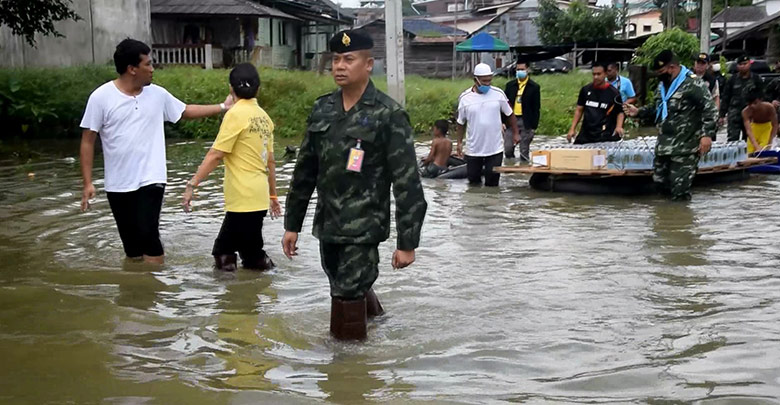 ความคืบหน้าเกี่ยวกับสภาวะน้ำท่วมระลอก 2 ในพื้นที่ จ.นราธิวาส พบว่า บรรยากาศโดยทั่วไปท้องฟ้าเริ่มแจ่มใส และฝนได้หยุดตกเป็นเวลา 1 วัน แต่ยังปริมาณน้ำในแม่น้ำสุไหงโก-ลก ยังคงมีปริมาณน้ำสูงขึ้นอย่างต่อเนื่อง และได้ล้นตลิ่งอยู่ที่ระดับสูง 110 ซ.ม.ไหลทะลักเข้าท่วมบ้านเรือนของประชาชน ที่ปลูกสร้างอยู่ในพื้นที่ราบลุ่มริมตลิ่ง ขยายวงกว้างจาก 2 ชุมชน เป็น 7 ชุมชน คือ ชุมชนหัวสะพาน ท่าโรงเลื่อย ท่าประปา ท่าชมพู่และชุมชนท่าบือเร็ง เขตเทศบาลเมืองสุไหงโก-ลก โดยมีระดับน้ำท่วมขังสูงโดยเฉลี่ย 50 ถึง 100 ซ.ม. จากผลพวงของมวลน้ำในพื้นที่ อ.สุคิริน และ อ.แว้ง ที่ไหลลงมาสมทบเพื่อระบายลงสู่ทะเลด้าน อ.ตากใบ ล่าสุดมีประชาชนได้รับความเดือดร้อน จำนวนกว่า 100 ครัวเรือน แต่ส่วนใหญ่ยังคงปักหลักอาศัยอยู่ที่บ้านพักบนชั้น 2 ทั้งนี้ พล.ต.ไพศาล หนูสังข์ ผบ.พล.ร.15/ผบ.ฉก.นราธิวาส พ.ท.ทวีรัตน์ เบญจาทิกุล ผบ.ฉก.นราธิวาส 30 พ.ต.ธีรศานต์ ตระกูล รอง ผบ.ฉก.นราธิวาส 30 นางสุชาดา พันธ์นรา นายกเทศมนตรีเมืองสุไหงโก-ลก พร้อมด้วยแพทย์สนาม ฉก.นราธิวาส 30 ได้ร่วมลงพื้นที่ลุยน้ำไปแจกถุงยังชีพให้กับประชาชนที่ได้รับผลกระทบจากอุทกภัยในครั้งนี้ ที่ชุมชนท่าเจ๊ะกาเซ็ง และท่าชมพู่ จำนวน 10 ครัวเรือน โดยส่วนใหญ่เป็นคนชรา ผู้ป่วยติดเตียงและอัมพฤกษ์ รวมทั้งนางกะมีร่า อาแวซาแต ซึ่งพึ่งคลอดลูกฝาแฝด 2 คน อายุเพียง 1 เดือน ที่ได้รับผลกระทบอย่างหนัก เนื่องจากสามีเป็นชาวมาเลเซีย ไม่สามารถที่จะเดินทางมาเยี่ยมครอบครัวได้หลังจากเกิดโรคติดเชื้อไวรัสโควิด-19 ระบาดในประเทศไทยและในมาเลเซีย แต่โชคดีที่ทุกวันนี้ยังมีเงินออมพอใช้จ่ายประทังชีวิต