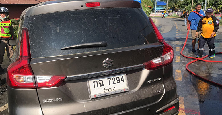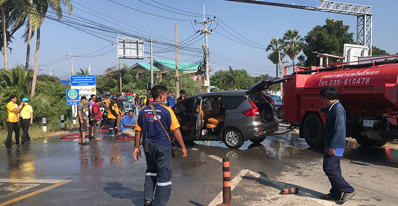 เก๋งประสานงาไฟลุก-คนขับรอดหวุดหวิด