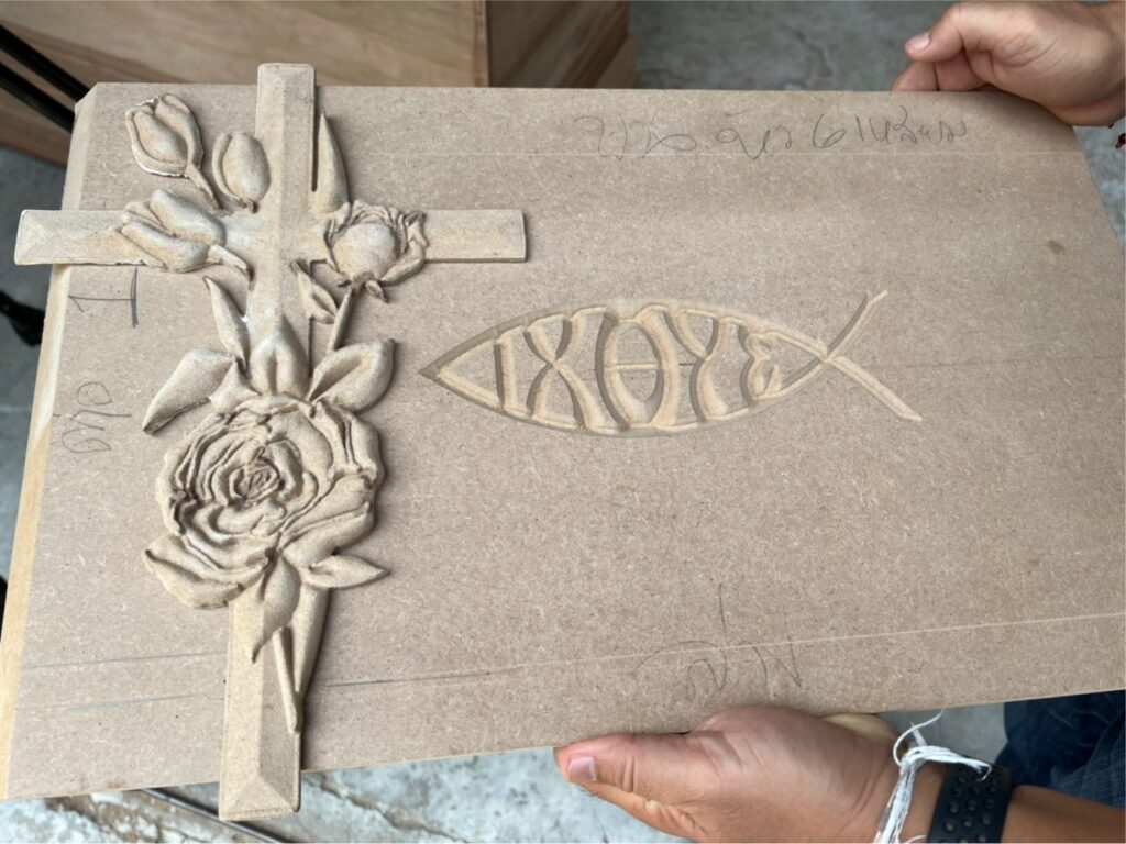ทั้งนี้ วิธีการทำเริ่มจากการร่างและดราฟมือปรับแก้เพื่อลงสรุปแบบก่อนนำมาวาดต่อในโปรแกรม3D ที่ใช้ในการลงกัดบนเครื่องCNC โดยหีบของคุณแตงโมจะเป็นการกัด3Dทั้งหมดก่อนประกอบ จึงมีระยะการทำที่ค่อนข้างละเอียดและใช้เวลา ซึ่งในช่วงขั้นตอนออกแบบทางสุริยาหีบศพ คลองหลวง ได้รับเกียรติเป็นอย่างสูงจากท่านอาจารย์ธงชัยที่คอยให้คำแนะนำกับทีมออกแบบมาโดยตลอด ในเรื่องความรู้สัญลักษณ์ ความเชื่อในทางศาสนาคริสต์ ซึ่งเป็นส่วนสำคัญอย่างมากที่ทำให้งานออกแบบครั้งนี้ออกมาเสร็จสมบูรณ์