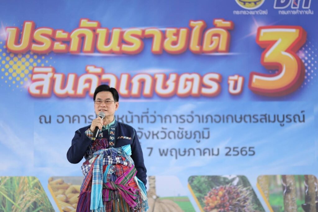 เฉพาะจังหวัดชัยภูมิ ประกันรายได้ 3 ปีที่ผ่านมาช่วยเกษตรกรผู้ปลูกข้าวแล้ว 150,000 ราย โอนเงินส่วนต่างแล้ว 4,200 ล้านบาท ทำให้มีเงินส่วนต่างเฉลี่ยครัวเรือนละ 38,419 บาท สำหรับยางพาราประกันรายได้ ยางก้อนถ้วยที่กิโลกรัมละ 23 บาท ช่วยเกษตรกรชัยภูมิไปแล้ว 3 ปี 5,800 ราย โอนเงินส่วนต่างแล้ว 104 ล้านบาท ซึ่งช่วงหลังราคาเกินจากรายได้ที่ประกันทำให้ไม่ต้องโอนเงินส่วนต่าง เฉลี่ยที่เคยได้รายละ 31,000 บาท มันสำปะหลังประกันรายได้ที่กิโลกรัมละ 2.50 บาท ซึ่งเราเดินหน้าเป็นตัวช่วยยามยากให้กับพี่น้องยามที่พืชเกษตรราคาตก