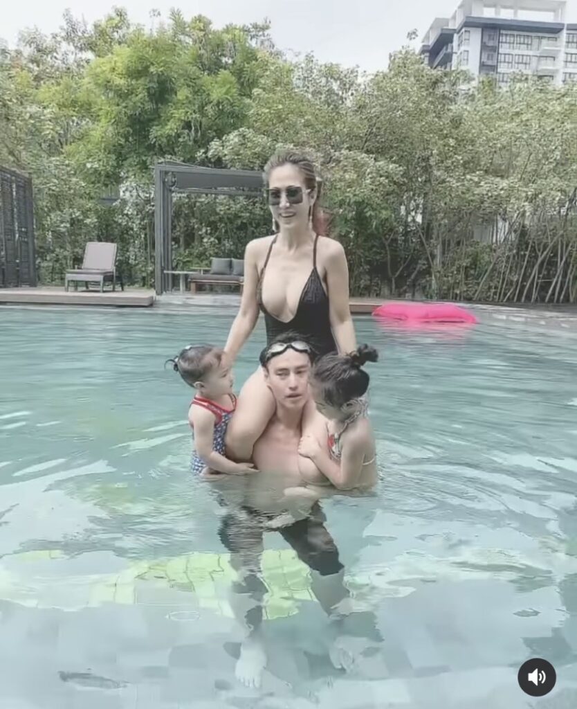 เห็นมาแต่ไกลไม่ต้องซูมเลยจ้า “ไฮโซน้ำหวาน” นางนี้เด็ดจริงล่าสุดโพสต์คลิปในไอจี เล่นน้ำกับครอบครัว โดยนางนั้นขี่คอสามี “นาวินต้าร์” ส่วนลูกสาวทั้ง 2 คน “น้องลูก้า-น้องมาโก้” ก็อยู่ในอ้อมกอดของพ่อเช่นกัน
