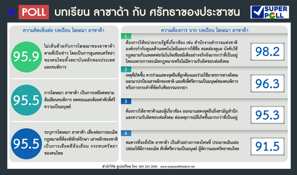 ซูเปอร์โพล 95.9% ไม่เห็นด้วยโฆษณาขายของแพลตฟอร์มชื่อดัง 98.2% จี้หน่วยงานรัฐจัดการบังคับใช้กฏหมายเด็ดขาด