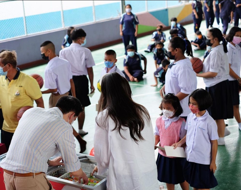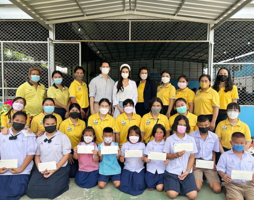 “กรณ์ ควง ศรีริต้า” มอบทุนการศึกษา ข้าวสาร ให้โรงเรียน วัดแหลมฉบัง