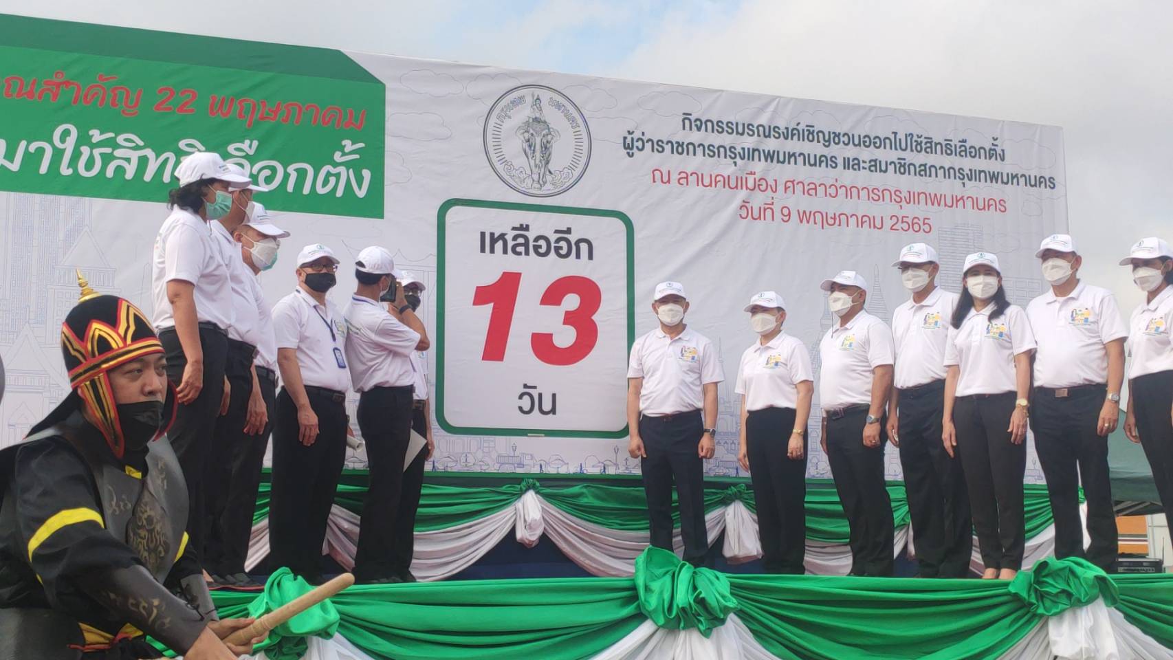 และผู้ว่ากรุงเทพมหานคร และร่วมเปิดป้ายนับถอยหลังเพื่อเป็นสัญลักษณ์แสดงความพร้อมการจัดการเลือกตั้งของกรุงเทพมหานคร พร้อมด้วยคณะผู้บริหารกรุงเทพมหานครข้าราชการบุคลากรกรุงเทพมหานครและหน่วยงานที่เกี่ยวข้อง ร่วมพิธีเปิดโดยพร้อมเพียงกันที่ลานคนเมืองศาลาว่าการกรุงเทพมหานคร(เสาชิงช้า)