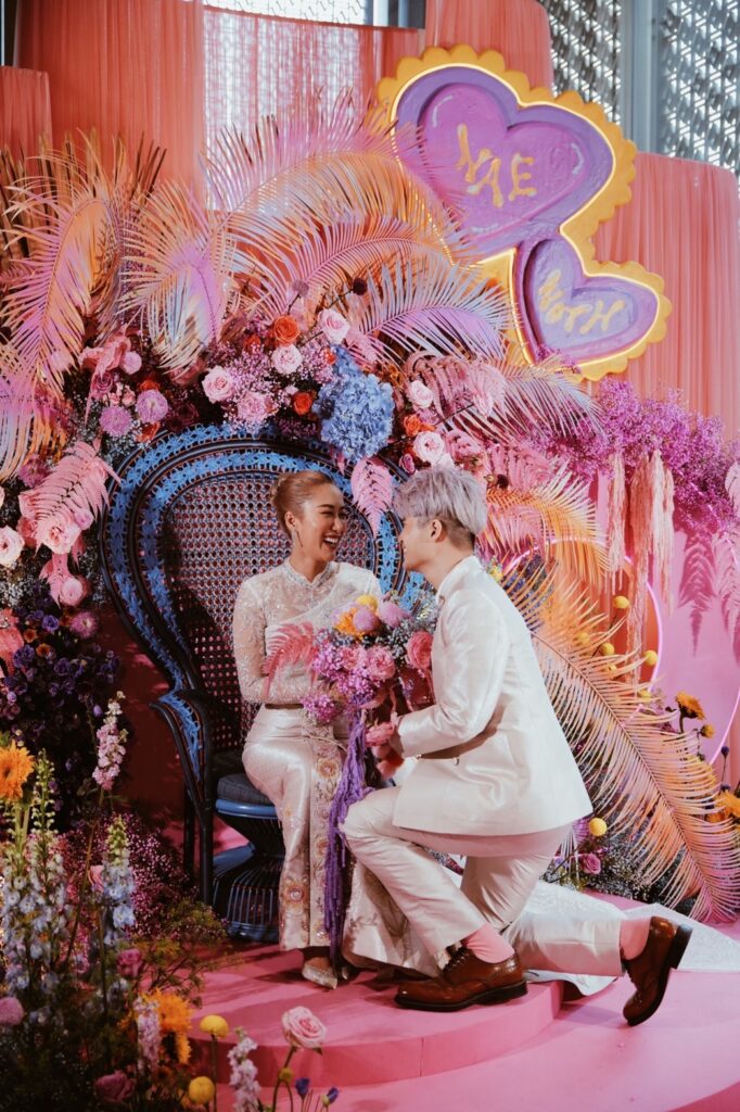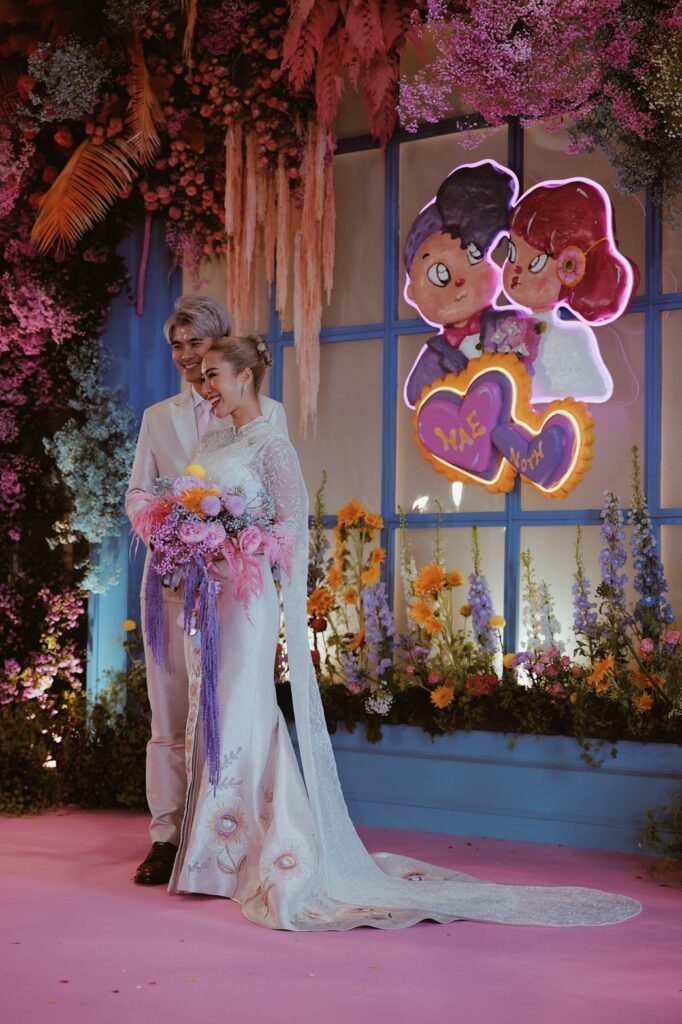 โดยทั้งคู่ได้จัดงานพิธีมงคลสมรส ณ ห้อง BALLROOM โรงแรม Capella Bangkok ท่ามกลางแขกผู้มีเกียรติที่มาร่วมแสดงความยินดีอย่างอบอุ่น อาทิ เพื่อนร่วมวง getsunova เนม นาฑี ไปร์ท รวมถึง คริส พีรวัส , ปาย สิตางศุ์ และ ยิปซี คีรติ ที่เดินทางมาร่วมงานและร่วมเป็นสักขีพยานรักของทั้งคู่