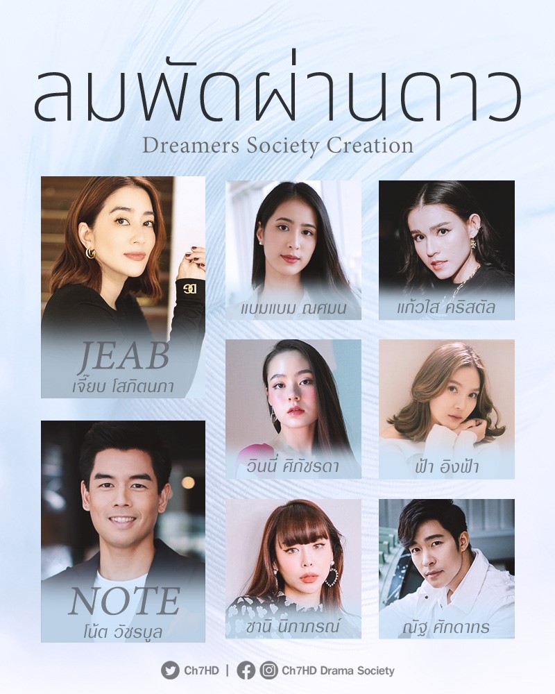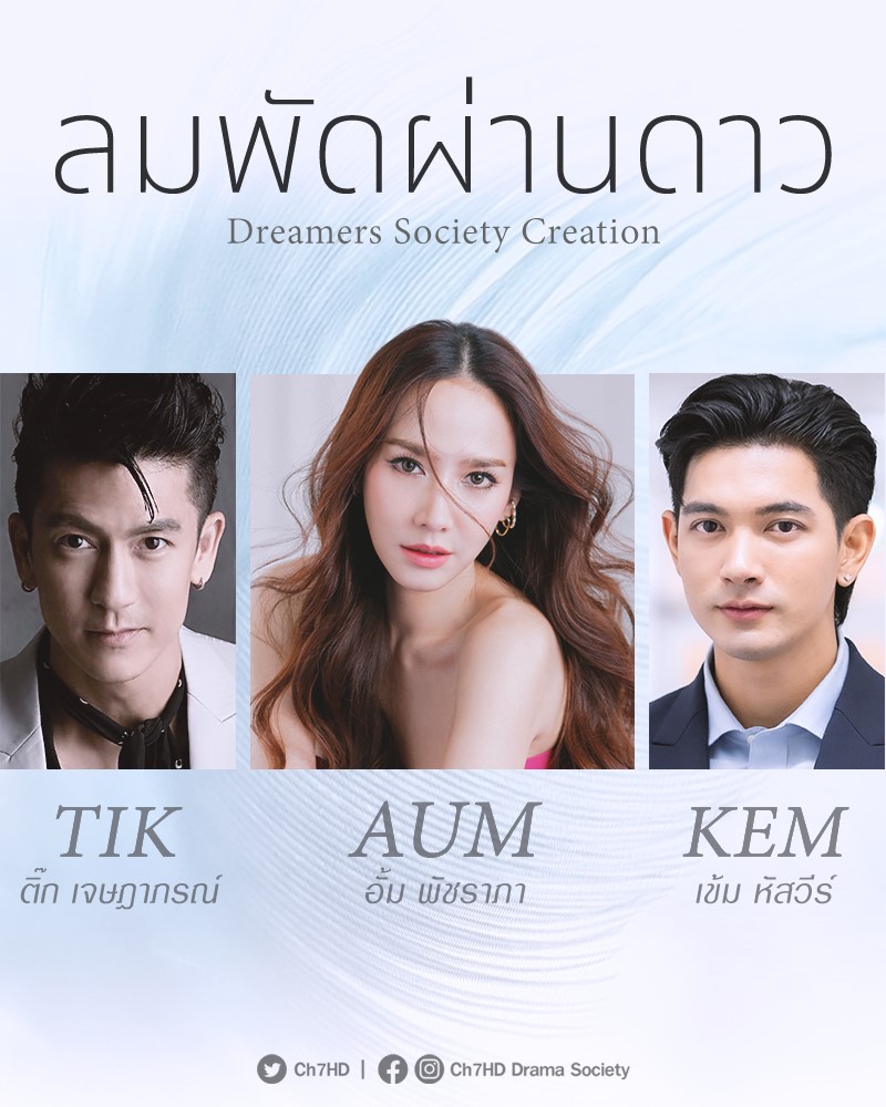 วันนี้ (12 พฤษภาคม) หลังจาก ติ๊ก-เจษฎาภรณ์ ผลดี ตั้งโต๊ะเปิดใจให้สัมภาษณ์กับทัพสื่อมวลชน ณ สตูดิโอ ช่อง 7HD หลังบันทึกเทปรายการ ฮัลโหลซุปตาร์ ว่า เตรียมทำหน้าที่ผู้จัดละคร ค่าย ดรีมเมอร์ส โซไซตี้ ครีเอชั่น ประเดิมด้วยโปรเจกต์ละครแนวโรแมนติกดราม่า ลมพัดผ่านดาว จากบทประพันธ์อมตะของ ว.วินิจฉัยกุล พร้อมกับเปิดโผนักแสดงที่ทำเอาทุกคนร้องว้าว !!! เพราะงานนี้ ผู้จัดสุดหล่อจะรีเทิร์นกลับมาร่วมงานกับ นางเอกซุปตาร์เบอร์หนึ่ง อั้ม-พัชราภา ไชยเชื้อ อีกครั้ง หลังจากที่ทั้งคู่เคยฝากผลงาน เรื่อง นางสาวจริงใจกับนายแสนดี ไว้เมื่อ 18 ปีที่ผ่านมา แถมในโผยังมีรายชื่อของพระเอกสุดฮอต เข้ม-หัสวีร์ ภัคพงษ์ไพศาล ที่จะมาร่วมงานด้วยเป็นครั้งแรก รวมทั้งยังเปิดโผนักแสดงอื่น ๆ ด้วย เพียงเท่านี้โลกโซเชียลก็ร้อนระอุ แฮชแท็ก ลมพัดผ่านดาว และแฮชแท็ก bigsurpriseอั้มติ๊กเข้ม ก็ขึ้นเทรนด์ทวิตประเทศไทยทันที