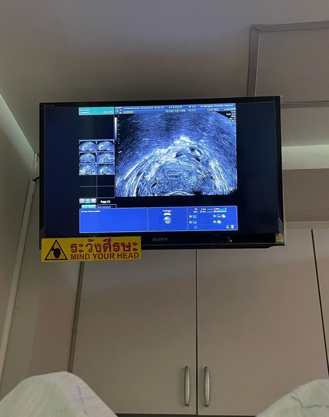 ล่าสุดสาวเอ็มกลับไปตรวจสุขภาพอีกครั้ง ด้วยการโชว์ภาพอัลตร้าซาวน์ พร้อมข้อความรู้สึกโล่งใจว่า “ไปตรวจสุขภาพมาล่าสุด ด้วยการอัลตร้าซาวด์ช่องท้อง ปรากฏว่าเจอ ซีสต์ที่รังไข่ ความใหญ่เกือบ 2 ซม. ใจแป้วมาก
