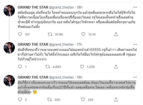 เรียกว่าเป็นความทรงจำที่ไม่เคยลืม สำหรับ “แกรนด์ กรณ์ภัสสร ด้วยเศียรเกล้า” หรือ “แกรนด์ เดอะสตาร์” หลังออกมาแชร์ประสบการณ์สมัยเรียน ม.ต้น ที่โรงเรียนหอวัง ถูกรุ่นพี่ในโรงเรียนท้าตบเป็นประจำ ทั้งทีไม่เคยรู้จักกัน เพียงแค่เข้าใจผิดคิดว่าไปมองหน้า