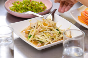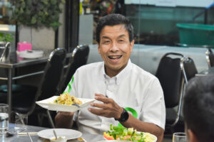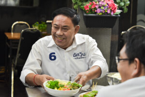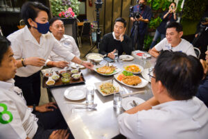 ชัชชาติ สิทธิพันธุ์ สั่งเมนู “ถั่วงอกกุยช่ายขาวเต้าหู้หมูสับ” จริงๆ แล้วไม่มีอะไรหรอกเพราะชอบกิน ไม่ได้มีอะไรลึกซึ้งเลย ในเมนูทั้งหมดมีชื่อส่วนประกอบมากที่สุด มี 4 อย่าง มีทั้งถั่วงอก กุยช่ายขาว เต้าหู้หมูสับ มันคือแสดงถึงกรุงเทพฯ ที่เป็นเมืองแห่งความหลากหลาย มีทั้งหลากหลายอาชีพ หลายพื้นที่ เพราะงั้นกรุงเทพฯ เราต้องมีคำตอบเพื่อให้เป็นเมืองที่น่าอยู่สำหรับทุกคน ซึ่งจะต้องมีนโยบายที่ตอบโจทย์กับทุกคน