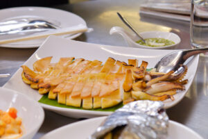 สุชัชวีร์ สุวรรณสวัสดิ์ สั่งเมนู “ปลาหมึกหอมย่าง” ผมเองโตที่ระยอง เพราะงั้นแล้ว เวลาคิดถึงระยองเราก็คิดถึงปลาหมึก เพราะปลาหมึกชื่อดังมาจาก จ.ระยอง แล้วก็มาดังที่กรุงเทพฯ มันก็คล้ายเหมือนกับผมถึงแม้ว่าจะเกิดที่ชลบุรีโตที่ระยองก็มาเป็นคนกรุงเทพฯ แล้วที่สำคัญปลาหมึกย่างไม่มีการปรุงแต่ง แค่ปลาหมึกมาย่างก็อร่อยแล้ว ก็เหมือนผมที่ไม่ต้องปรุงแต่งอะไรเลย อร่อยอยู่แล้วครับ