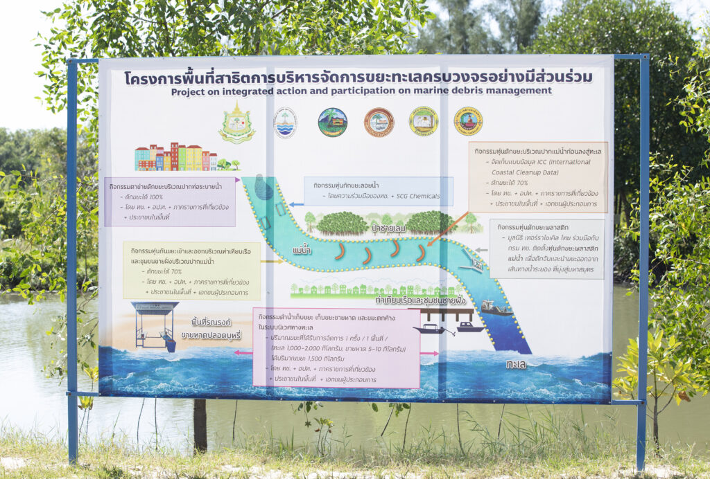 ด้านนายภุชชงค์ สฤษฎีชัยกุล ผอ. สทช.1 กล่าวเสริมว่า ปัญหาขยะตกค้างในสิ่งแวดล้อม รวมถึงการจัดการขยะทะเลกลายเป็นกระแสสังคมและหลายองค์กรต่างให้ความสำคัญและพยายามบูรณาการร่วมกันเพื่อการจัดการอย่างเป็นระบบและครบวงจร โดยกรมทรัพยากรทางทะเลและชายฝั่ง ได้จับมือกับพันธมิตรภาครัฐและเอกชนจัดทำพื้นที่สาธิตการบริหารจัดการขยะทะเลครบวงจรอย่างมีส่วนร่วม สวนสาธารณะโขดปอ ชุมชนเนินพระ-เทศบาลนครระยอง ความร่วมมือจากทุกภาคส่วนที่ได้ร่วมกันดำเนินงานตั้งแต่ช่วงปลายปี 2562 ไม่ว่าจะเป็น โมเดลศูนย์เรียนรู้ครบวงจรด้านความหลากหลายทางชีวภาพ ป่าชายเลน การจัดการขยะและขยะทะเล ที่ดำเนินงานโดย IUCN การดำเนินการส่งเสริมการคัดแยกขยะต้นทางในครัวเรือน โดย SCG Chemical การจัดการขยะปลายทางโดยใช้นวัตกรรม Litter trap ของ SCG การคิดค้นนวัตกรรมเรือถีบเก็บขยะของกลุ่มบริษัท ดาว ประเทศไทย ร่วมกับวิทยาลัยเทคนิคระยองและกลุ่มอนุรักษ์และฟื้นฟูแม่น้ำระยองป่าชายเลน รวมถึงนวัตกรรม River Plastic Trap ของมูลนิธิเทอร์ราไซเคิล ไทย ที่ได้จัดทำขึ้นเป็นต้นแบบ และการดำเนินการพื้นที่สาธิตโครงการชายหาดปลอดบุหรี่ การติดตั้งตาข่ายดักปากท่อก่อนลงสู่ทะเล และนวัตกรรมทุ่นกักขยะบริเวณพื้นที่ป่าในเมืองและบูมกักขยะ ที่กรมทรัพยากรทางทะเลและชายฝั่งได้ผลักดันดำเนินการจนประสบความสำเร็จอย่างเป็นรูปธรรม