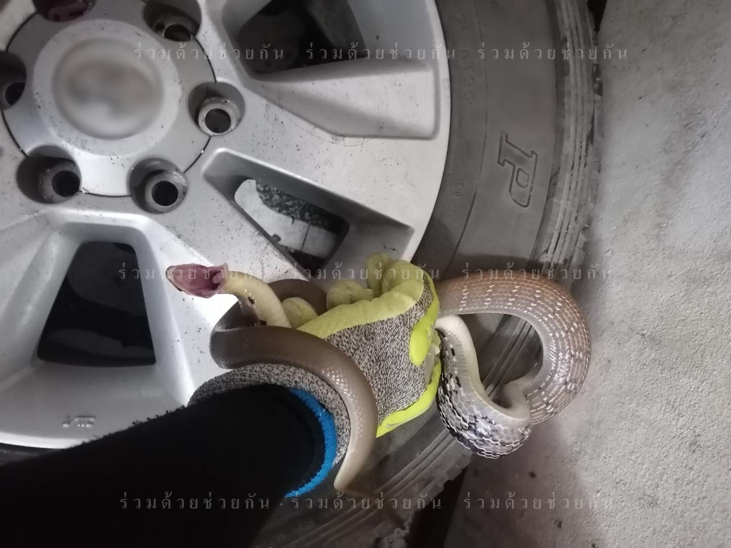 อาสาร่วมด้วยคุ้มภัย 153 รับแจ้งจากประชาชน ขอความช่วยเหลือจับงูไม่ทราบชนิด ที่บ้านหลังหนึ่งภายในซอยสวนสยาม 8 ถนนสวนสยาม เขตคันนายาว กรุงเทพฯ เกรงว่างูจะทำอันตรายสมาชิกภายในบ้าน ต้องการอาสาให้การช่วยเหลือจับงู อาสาร่วมด้วยฯ ไปให้การช่วยเหลือ ตรวจสอบพบงูทางมะพร้าว ความยาวประมาณ 1 เมตร ซ่อนตัวอยู่ในยางรถยนต์ จึงดำเนินการใช้ไม้คล้องจับงูไว้ได้สำเร็จ พร้อมนำปล่อยคืนสู่ธรรมชาติห่างไกลบ้านเรือนประชาชนแล้ว พื้นที่ สน.บางชัน