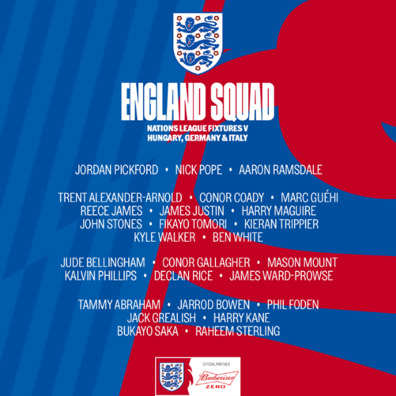 สำหรับ อังกฤษ มีโปรแกรม ยูฟ่า เนชั่นส์ ลีก เอ ฤดูกาล 2022-23 รออยู่ 4 เกมในเดือนมิถุนายน เริ่มจากเยือน ฮังการี ที่บูดาเปสต์ วันที่ 4 มิถุนายน, เยือน เยอรมนี ที่มิวนิค วันที่ 7 มิถุนายน และสองเกมในบ้านที่ โมลินิวซ์ รังของ วูลฟ์แฮมป์ตัน วันเดอเรอร์ส เจอกับ อิตาลี วันที่ 11 มิถุนายน และ ฮังการี วันที่ 14 มิถุนายน