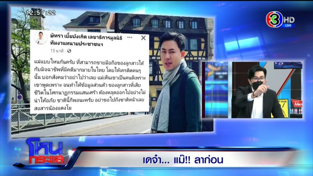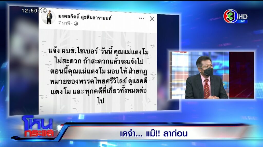 รายการโหนกระแสวันที่ 26 พ.ค. 65 ดำเนินรายการโดย “หนุ่ม กรรชัย กำเนิดพลอย” ผลิตในนามบริษัท ดีคืนดีวัน จำกัด ออกอากาศทุกวันจันทร์-ศุกร์ เวลา 12.35 น. ทางช่อง 3 กดเลข 33 สัมภาษณ์ ทนายเดชา ที่มาพร้อม “รองแต้ม พล.ต.ต. วิชัย สังข์ประไพ”