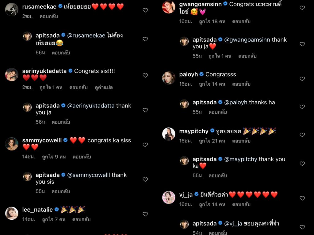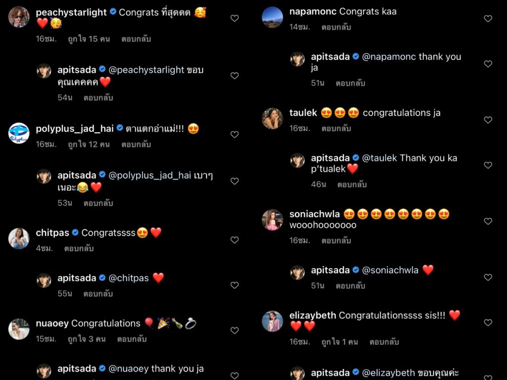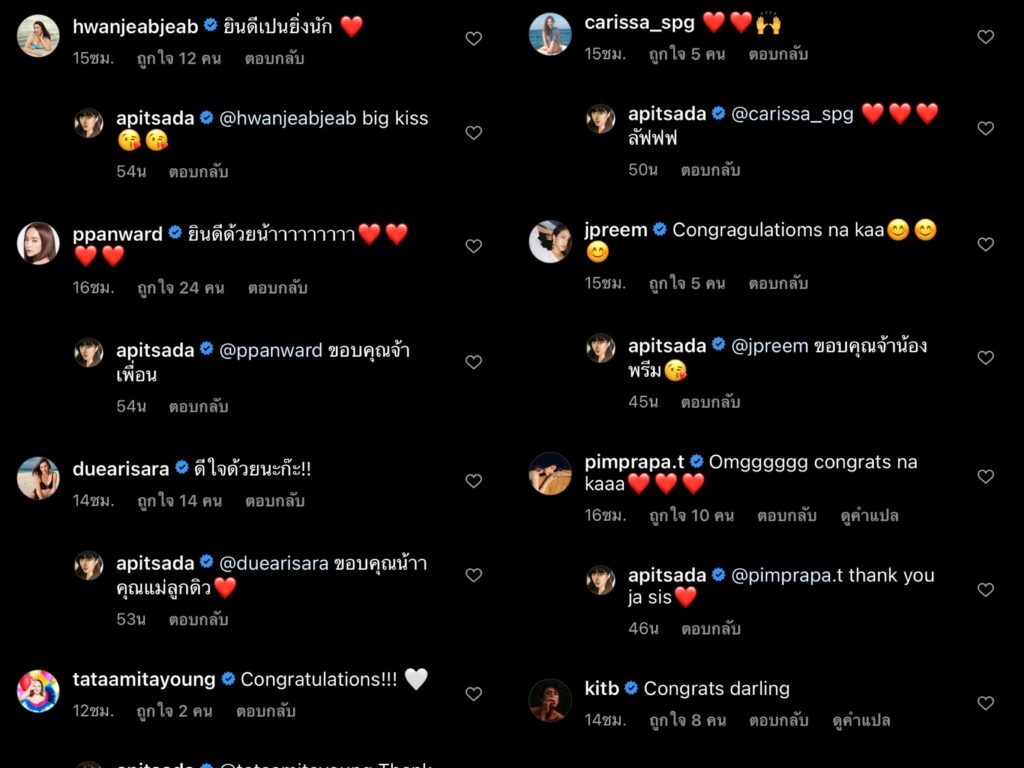 งานนี้เหล่าพี่น้องคนในวงการและแฟนคลับต่างแห่เข้ามาคอมเมนต์แสดงความยินดีกับว่าที่เจ้าสาว “ไอซ์ อภิษฎา” กันอย่างล้นหลามเลยทีเดียว