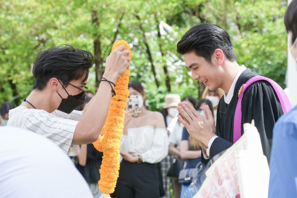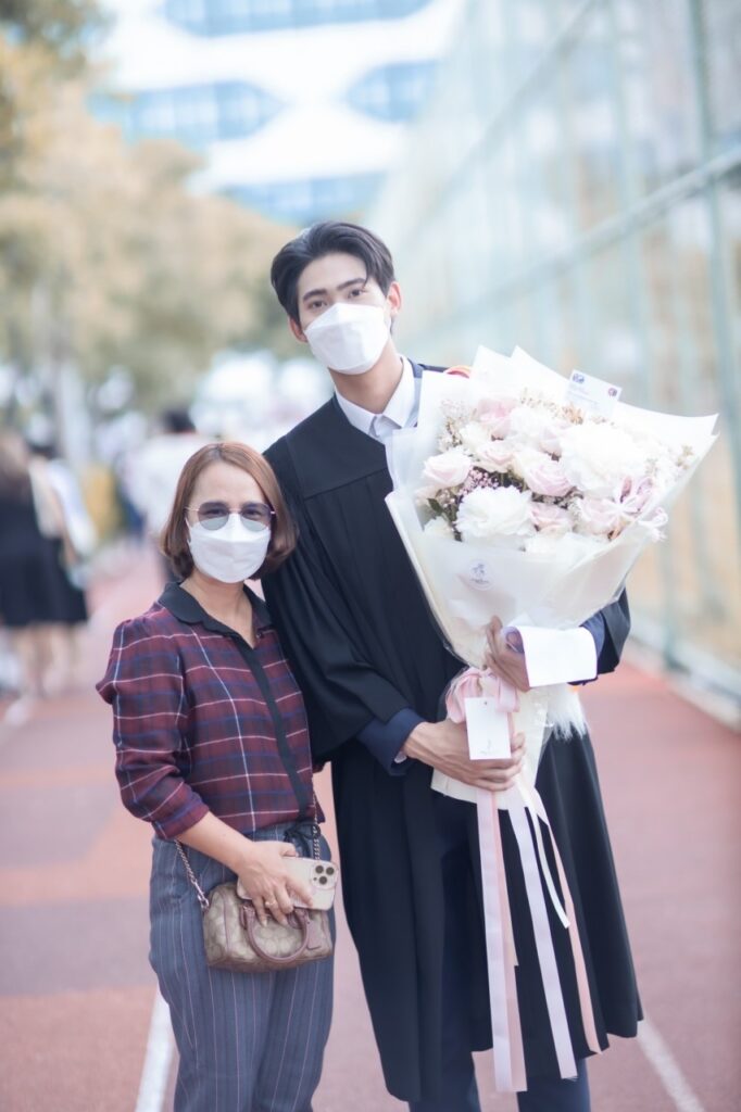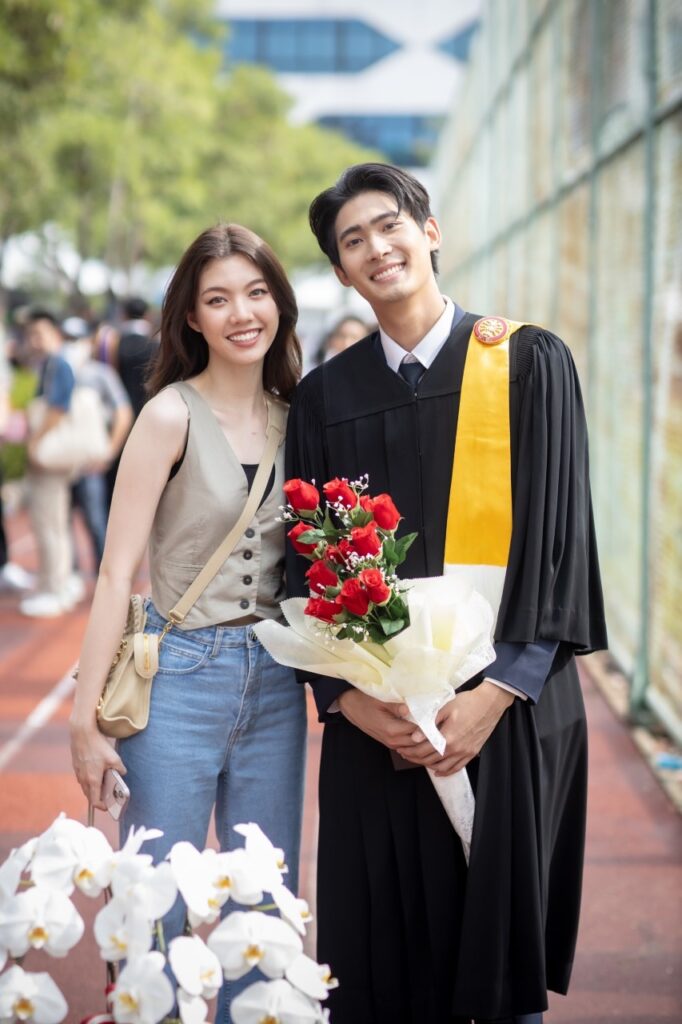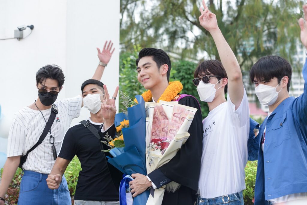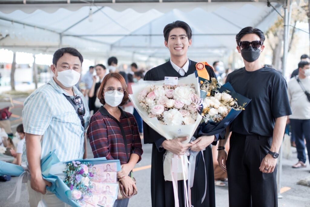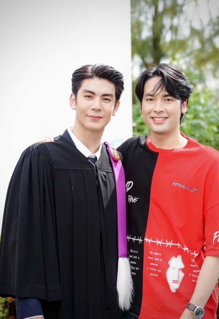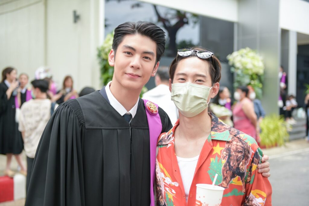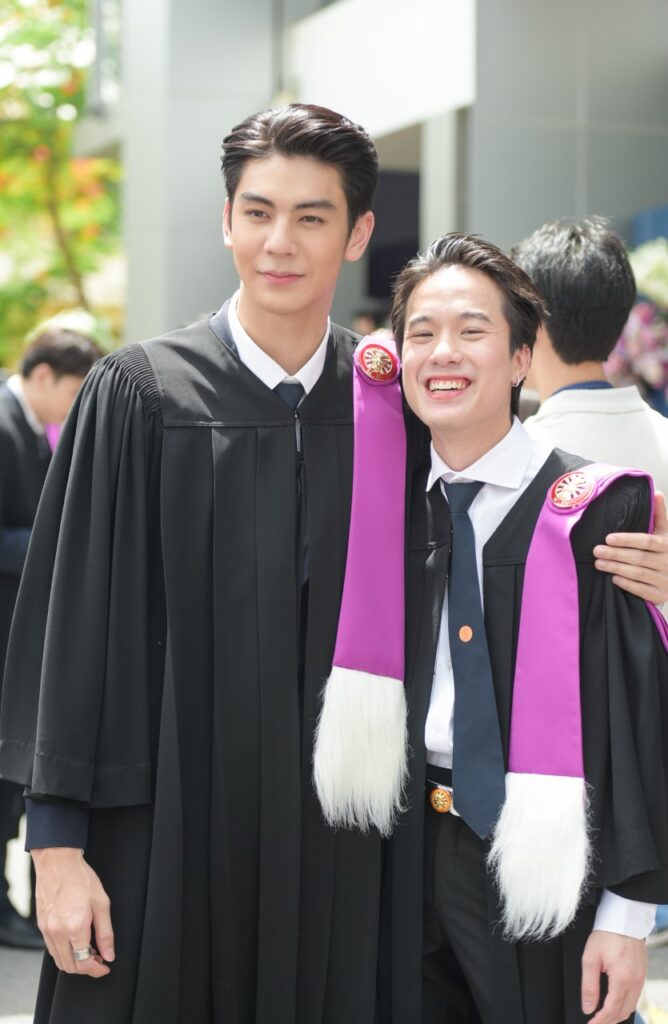 ขณะที่สองหนุ่ม “มีน พีรวิชญ์” และ “ริว วชิรวิชญ์” รุ่นพี่รุ่นน้อง จาก คณะวารสารศาสตร์และสื่อสารมวลชน ที่ถึงแม้จะเรียนกันคนละปี แต่ด้วยสถานการณ์โควิด19 เลยได้รับปริญญาพร้อมกันในปีนี้ ซึ่ง “มีน” เผยว่า “ถึงแม้จะจบมานานแล้ว แต่ก็ดีใจ ก็ถือเป็นอีกหนึ่งอย่างที่ค้างคามานาน หลังจากนี้ก็ถือว่าเสร็จสิ้นเกี่ยวกับภารกิจเรื่องเรียนโดยสมบูรณ์ และเข้าสู่วัยทำงานอย่างเต็มตัว ส่วนเกรดที่จบมาก็ถือว่าเป็นที่น่าพอใจ เพราะตอนที่เรียน ก็ทำงานไปด้วยครับ และตอนนี้ก็ลุยงานแสดง กำลังถ่ายทำละครเรื่อง ซุปตาร์ 2550 และมีละครที่รอเปิดกล้องอีก 2 เรื่อง คือ จนกว่าจะได้รักกัน และ กรงดอกสร้อย กับทาง ช่อง 3”