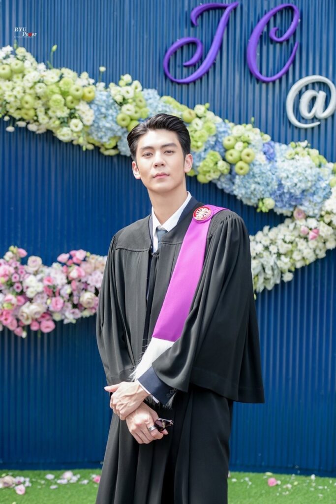 ด้าน “ริว วชิรวิชญ์” ที่เจ้าตัวบอกว่า “จบ 4 ปีตามเพื่อนๆ ยอมรับว่าเรียนเหนื่อยมาก โชคดีที่มีเพื่อนช่วยได้เยอะ เกรดก็ไม่ได้มากมาย แต่ก็ดีใจที่เรียบจบสำเร็จ โดยเจ้าตัวก็ตั้งใจจะเรียนต่อ ปริญญาโท เพราะได้โควต้านักกีฬามหาลัย ตั้งใจอยากจะเรียนด้านรัฐศาสตร์ ส่วนจะเป็นที่ มหาวิทยลัยไหน บอกอีกที โดยบรรยากาศในวันซ้อมรับปริญญาก็ทีนักแสดงจากละคร เลือดเจ้าพระยา จ็อบ ธัชพล – เฟริส ภารดา และ ผู้จัด กัญจน์ ภักดีวิจิตร และ ตี๋ ธนพล ก็มาร่วมแสดงความยินดีด้วย และ ‘ริว‘ ก็ฝากแฟนๆ ติดตามละครเรื่อง เลือดเจ้าพระยา ที่รอออนแอร์ ตอนนี้ถ่ายทำ มาตาลดา และ อุบัติรักเกาะสวรรค์”