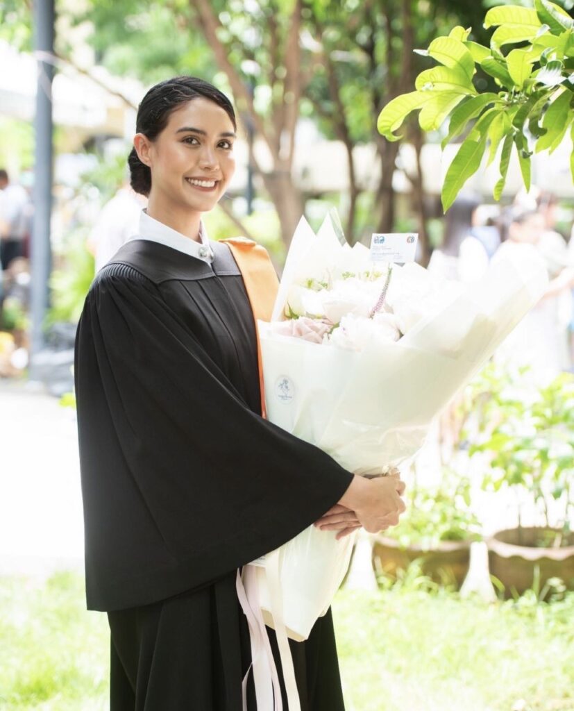 โดย “แคท ดฤณญา” จบจาก คณะศิลปศาสตร์อินเตอร์ เอกอังกฤษอเมริกันศึกษา จบมาได้กว่า 2 ปีกว่าแล้ว แต่ด้วยสถานการณ์โควิด19 เลยเลื่อนมารับในปีนี้ ซึ่งแคทก็บอกว่า “ดีใจที่เรียบจบ และได้มาลุยรับงานละครเต็มที่ ตอนนี่ก็ถ่ายทำอยู่ 2 เรื่อง 7 วัน เรื่อง นรสิงห์ และ พยัคย์ร้ายซ่อนลาย และเรื่อง รตีลวง ที่กำลังออกอากาศอยู่ ส่งนเรื่องการเรียน ‘แคท‘ ก็บอกว่าไม่ทิ้ง ก็คิดอยากจะเรียนต่อ ป.โท ด้วยเช่นกัน”