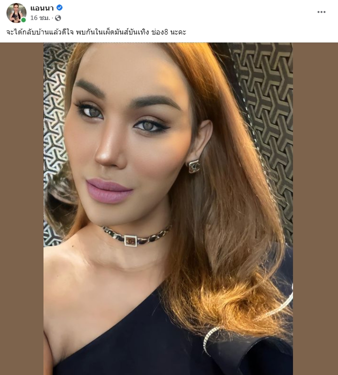 ล่าสุด แอนนา มีความเคลื่อนไหวอีกครั้ง โดย โพสต์ข้อความว่า “จะได้กลับบ้านแล้วดีใจ พบกันในเผ็ดมันส์บันเทิง ช่อง8 นะคะ”