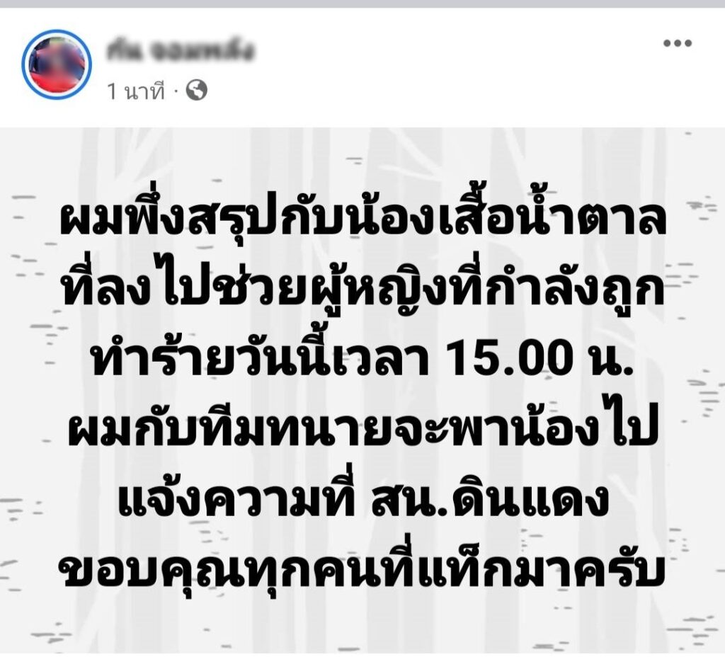 ตำรวจฝ่ายป้องกันปราบปรามเจ้าของรหัส 124 สน.ดินแดง ที่เข้าระงับเหตุชายหนุ่ม จาก รายการทีวีชื่อดัง มีปากเสียงทะเลาะวิวาทรุนแรงกับเพื่อนสาวคนสนิทอย่างรุนแรงโดยมีการฉุนกระชากลากดึงลงกับพื้นจนเสื้อผ้าขาด เหตุเกิดบริเวณคอนโดแห่งหนึ่ง ย่านพระราม 9