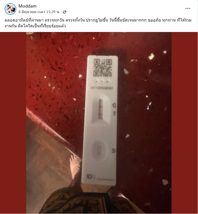หลังจากก่อนหน้านี้พิธีกรชื่อดังอย่าง มดดำ คชาภา ได้ออกมาแจ้งข่าวเผยผลตรวจ ATK ขึ้น 2 ขีด ติดเชื้อโควิด-19 พร้อมออกมาขอโทษทุกคนที่ได้ร่วมงาน และประกาศขอหยุดงานทันที