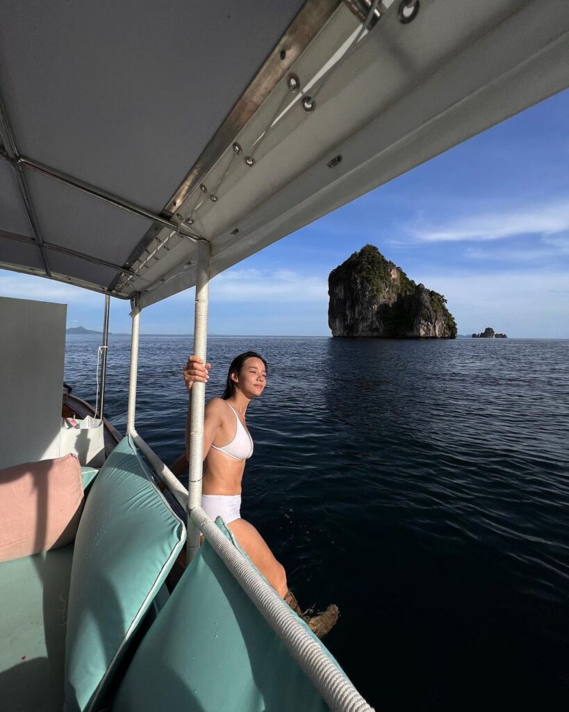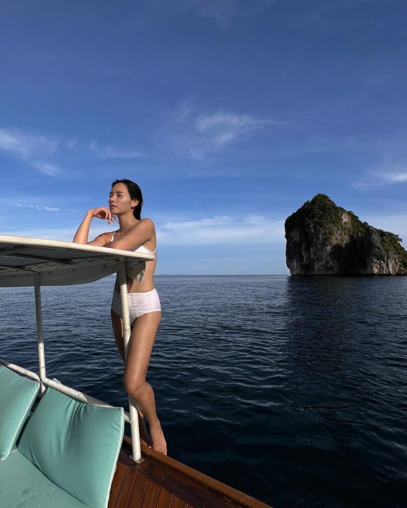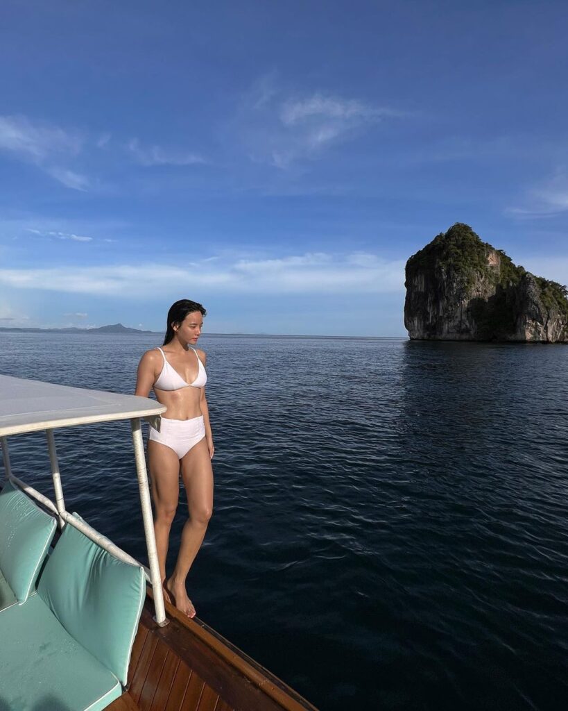 ล่าสุดเจ้าตัว ออกมาโพสต์ภาพแฟชั่นเซตชุดว่ายน้ำ ผ่านทางบัญชีอินสตาแกรมส่วนตัว ซึ่งรอบนี้เธอมาในชุดบิกินี ทูพีซ สีขาว เผยให้เห็นหุ่นสุดเซ็กซี่ หน้าท้องแบนราบสวยๆ พร้อมโพสท่าสับ ๆ บนเรือหรูกลางทะเล