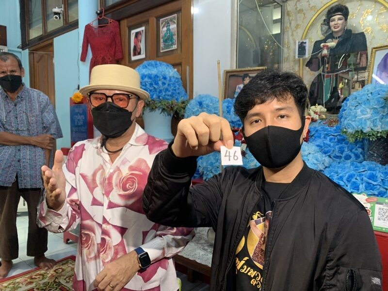 จากนั้นเหมือนเป็นธรรมเนียมในทุกๆปี เมื่อเสร็จสิ้นพิธีการทำบุญแล้ว “เพชร” ได้ล้วงไหจับเลขเด็ดให้กับแฟนๆ โดยเจ้าตัวจับได้เลข 46 นั่นเอง