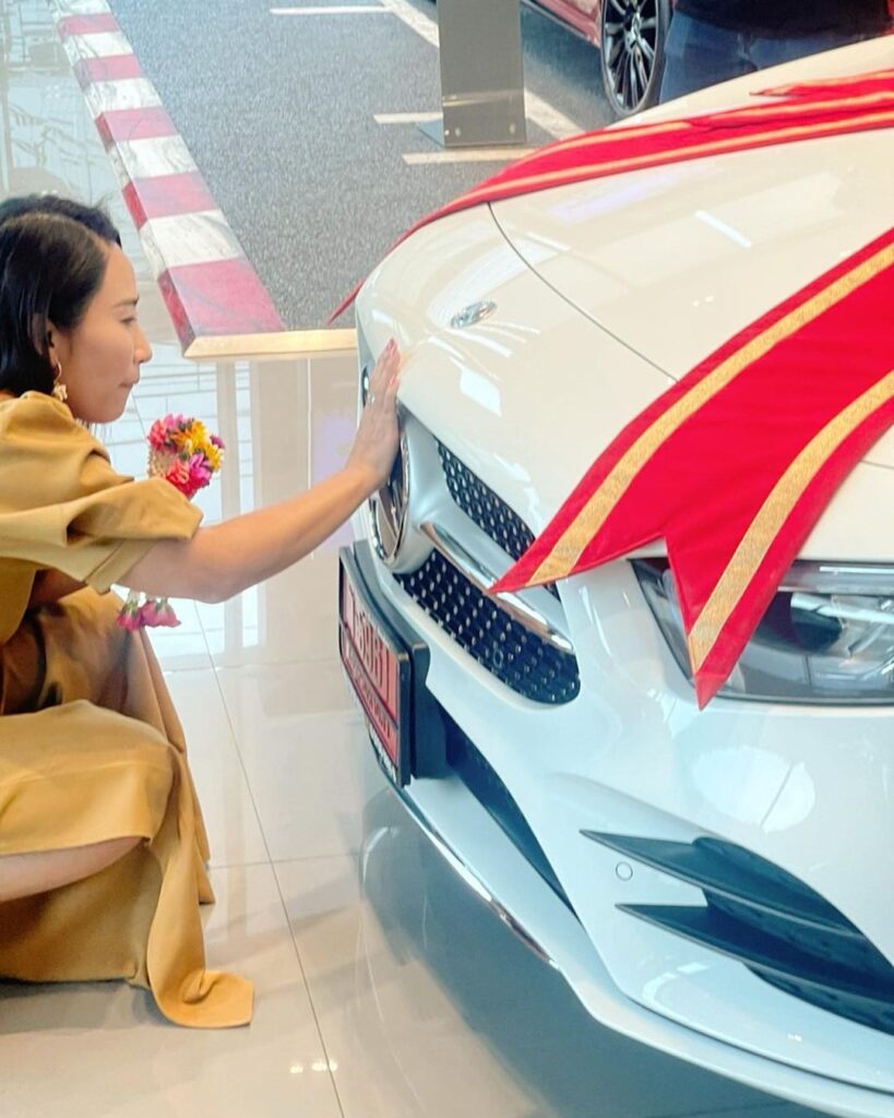โดยงานนี้สาว “ลาล่า” โพสต์ภาพรับรถคันใหม่ลงในอินสตาแกรม พร้อมเขียนแคปชั่น “วันพระใหญ่ สุขใจที่มีเธอ❤️❤️ กลับบ้านเรานะลูก แม่มารับแล้ว #น้องสุดปัง”