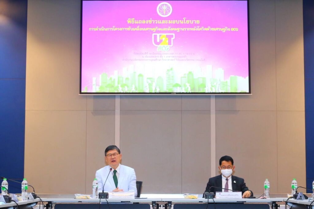 ศ.(พิเศษ) ดร.เอนก เหล่าธรรมทัศน์ รัฐมนตรีว่าการกระทรวงการอุดมศึกษา วิทยาศาสตร์ วิจัยและนวัตกรรม(อว.) ประชุมมอบนโยบายโครงการขับเคลื่อนเศรษฐกิจและสังคมฐานรากหลังโควิดด้วยเศรษฐกิจ BCG(U2T for BCG and Regional Development)” หรือโครงการ “มหาวิทยาลัยสู่ตำบล U2T for BCG” หลังจากที่คณะรัฐมนตรี(ครม.)