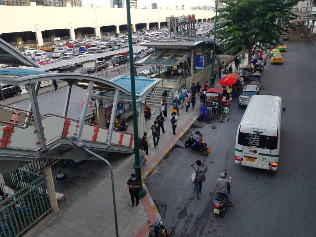 ประชาชนรวมถึงผู้โดยสารที่มารอใช้บริการบริเวณป้ายรถเมล์ด้านหน้า BTS หมอชิตค่อนข้างหนาแน่น โดยส่วนหนึ่งเป็นจุดต่อรถไปยังเส้นทางฝั่งถนนลาดพร้าว วิภาวดีรังสิตและพหลโยธิน ซึ่งมีรถตู้โดยสารรอให้บริการ แต่ในช่วงเย็นวันนี้ฝนไม่ตกทำให้ผู้มาใช้บริการรถตู้ไม่ต้องต่อแถวรอยาว