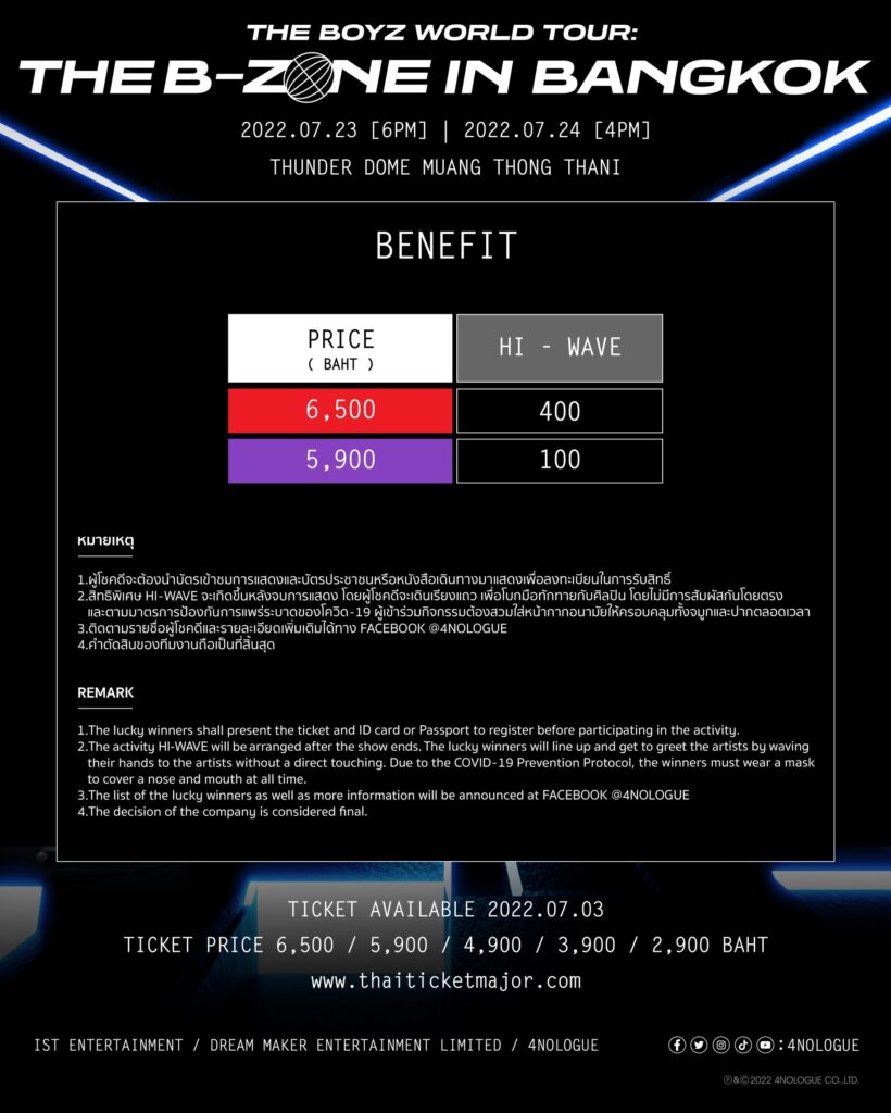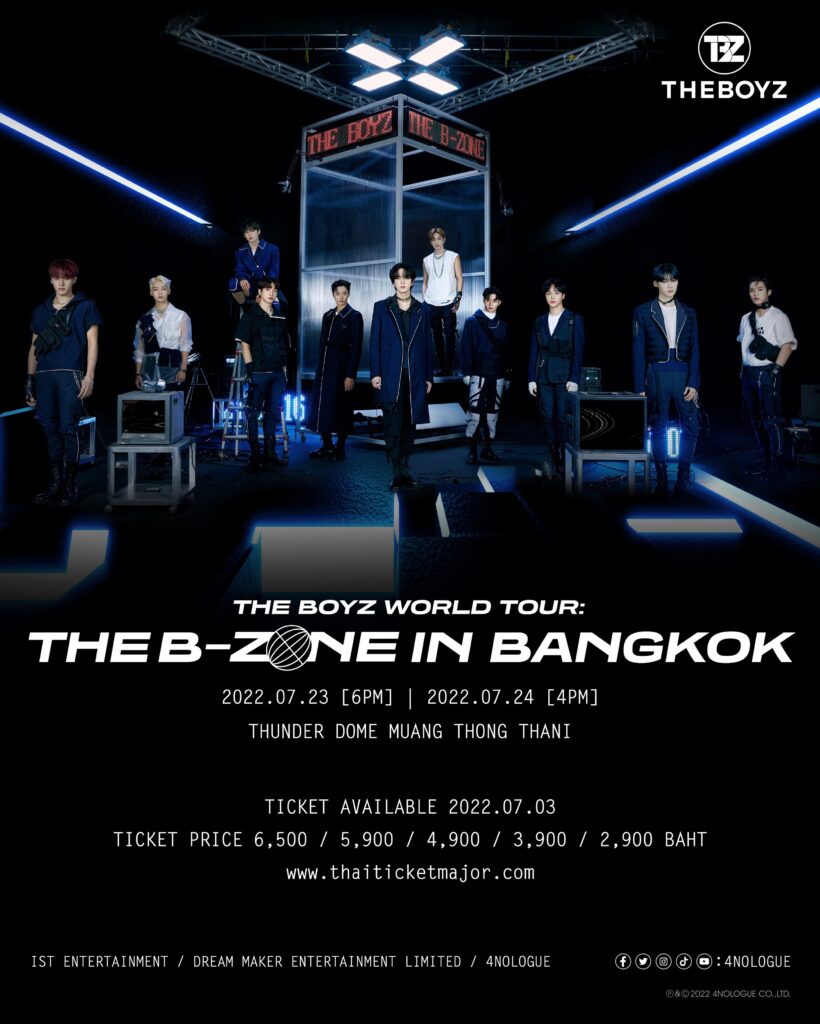 THE B(ชื่อแฟนคลับ) วอร์มร่างกายเตรียมกดบัตร 3 กรกฎาคมนี้ แล้วไประเบิดความมันส์พร้อมกับหนุ่มๆ THE BOYZ ทั้ง 2 รอบการแสดง ในวันที่ 23-24 กรกฎาคม 2565 ธันเดอร์โดม เมืองทองธานี
