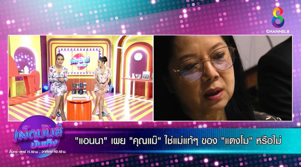 แอนนา เคยเกิดขึ้นมาแล้วครั้งนึง คือข่าวนี้มันเคยดังมาก เมื่อ 10 กว่าปีก่อน คือตอนนั้นคนออกมาโฟกัสว่า เนี่ยแม่แตงโมตัวจริงเค้าออกมาแสดงตัวแล้ว แต่ในความจริงคือ เรื่องนี้แอนนาเคยคุยกับโมว่า ชัวร์ใช่มั้ยคนนี้แม่เธอจริงใช่มั้ย โมก็เป็นคนยืนยันว่าคนนี้แหล่ะแม่ฉัน แม่ฉันที่อยู่กับพ่อฉันคือคนนี้คนเดียว นอกนั้นแม่เลี้ยงไม่เกี่ยว ดังนั้นถ้ามีใครมาบอกว่าคนนี้ไม่ใช่แม่แตงโม ฉันขอเถียงเพราะว่า โมเองก็รู้อยู่ตั้งแต่แรกแล้ว ตอนมีข่าวนี้ออกมา เค้าออกมาแก้ข่าวนี้ตั้งแต่แรก คราวนี้ประเด็นต่อมาก็คือ เมื่อวานได้มีโอกาสโทรศัพท์คุยกับคุณแม่ และคุณแม่ก็ยังพูดอยู่เลยว่าเนี่ยแม่เองเปลี่ยนทนายมาเป็นครั้งที่ แล้ว คนมองแม่ยังไงบ้าง เราก็บอกว่า แม่ไม่ต้องไปสนคนมอง ถ้าแม่คิดว่าอะไรมีประโยชน์ต่อรูปคดี ใครช่วยเราได้จริงจัง ใครทำหน้าที่ให้แม่ได้เต็มที่แม่ก็เลือกคนนั้นไปจบ เรื่องที่ผ่านมาแม่อาจจะมีการเปลี่ยนไปเปลี่ยนมา ในสังคมแม่อาจจะดูไม่ดีแต่ว่า หนูขอให้แม่ทำเพื่อโมนะ แม่ก็บอกว่าไม่ต้องกลัวแม่ต้องทำเพื่อโม เนี่ยวันพฤหัสนี้เดี๋ยวจะไปเอาเสื้อผ้าของแตงโมที่บ้านเอามาขายก็ได้ เอามาบริจาคก็ได้ เพื่อให้มันเกิดประโยชน์ เราจะบอกว่าเวลาเราคุยกับแม่นะเราจะเข้าใจแม่หลายๆ อย่าง แต่เวลาเราเห็นแม่เราจะบอกแม่อยู่เสมอ แม่เป็นคนที่แม่อาจจะไม่รู้ตัว ที่เวลาแม่พูดออกสื่อแม่ไม่รู้ตัว หลายอย่าง เวลาพูดออกไป มันจะเป็น “ลบ” เยอะ มันทำให้คนออกมาเป็น “พระมารดา” บ้าง หรือว่า “แม๊” บ้าง คนค่อนข้างออกมา เนกาทีฟกับแม่เยอะ
