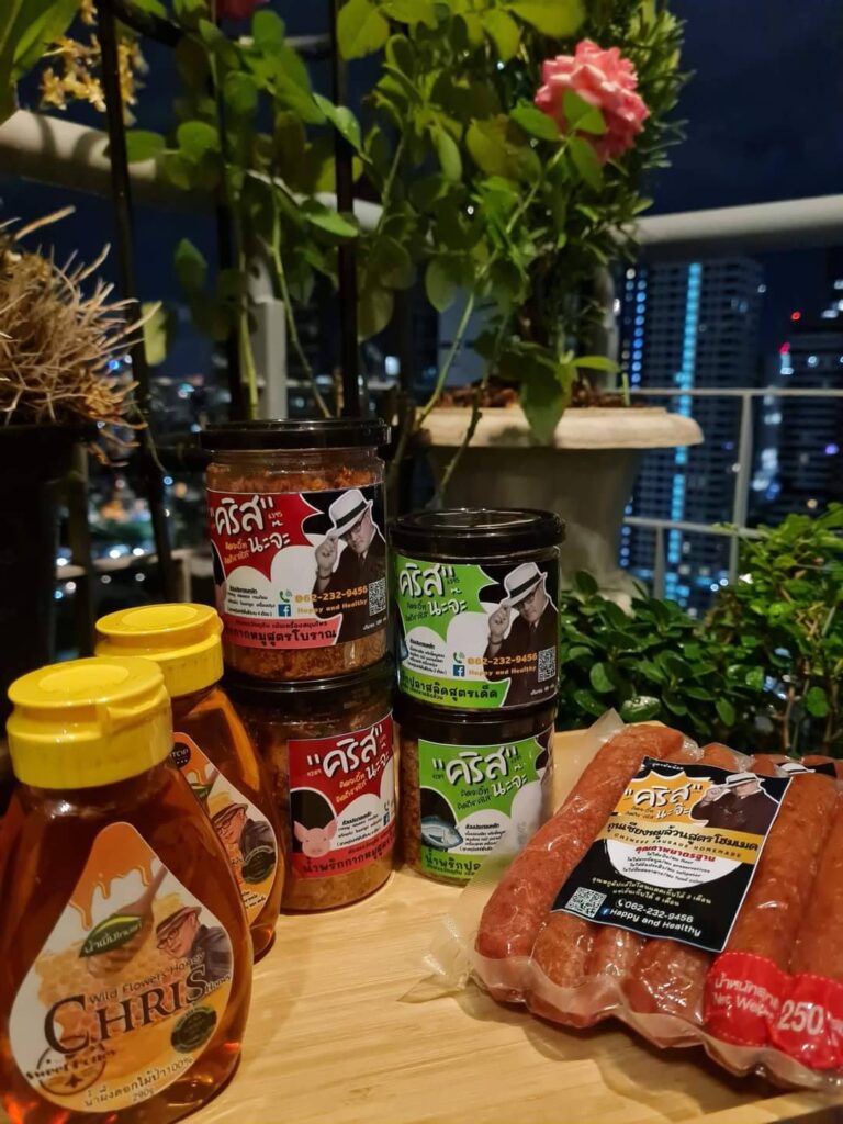 “เราก็พยายามมองหาสินค้ามาขายอีก ก็ไปเจอน้ำผึ้งซึ่งเป็นน้ำผึ้งจากเกษตรกรผู้ผลิตโดยตรง เราค่อนข้างเข็ดจากการลงทุนเยอะๆ แต่เจ้านี้เขาให้ลงทุนหลักพันก็ปรึกษากันว่า ลงทุนเท่านี้ถ้าบาดเจ็บก็ไม่เป็นไร ก็โชคดีที่ทางฟาร์มให้ความกรุณากับเรา ช่วยยิงแอดให้ และช่วยส่งให้ด้วย ก็เลยเป็นที่มาของน้ำผึ้งคริสฮันนี่ สรุปตอนนี้ก็มีขายทั้งน้ำผลไม้ น้ำพริก กุนเชียง และน้ำผึ้ง”