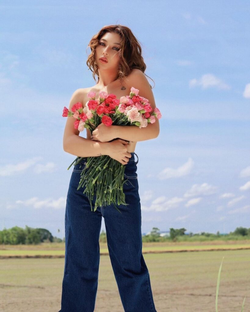 ทำไอจีลุกเป็นไฟเลยทีเดียว สำหรับนักแสดงสาวลูกสองอย่าง “กุ๊บกิ๊บ สุมณทิพย์ ชี” หลังล่าสุดออกมาปล่อยช็อตเด็ดสุดแซ่บ เปลื้องผ้าเปลือยท่อนบนหอบช่อดอกกุหลาบปิดหน้าอกหน้าใจ ถ่ายแบบโปรโมตขายกางเกงยีนส์ ลงอินสตาแกรมส่วนตัว