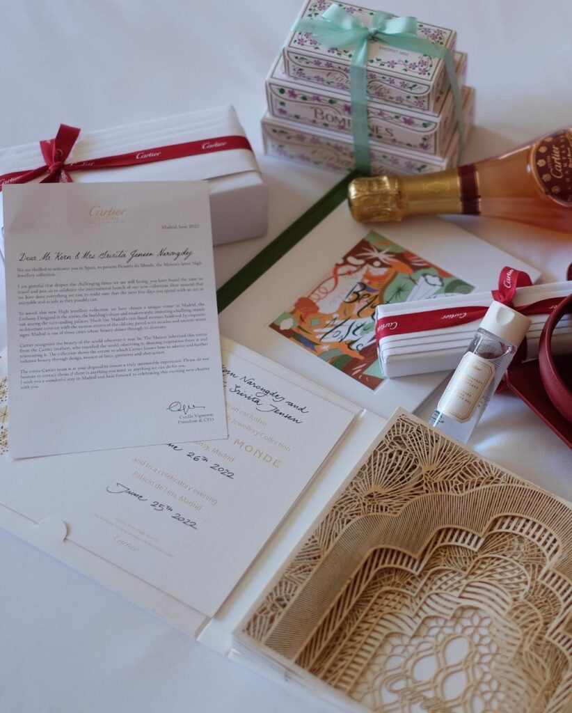 ละสายตากับลุคสวยปัง! จาก “ริต้า – ศรีริต้า เจนเซ่น ณรงค์เดช” ไม่ได้เลย เมื่อถูก Cartier แบรนด์เครื่องประดับสุดหรู สัญชาติฝรั่งเศส ส่งเทียบเชิญให้เป็นแขกคนพิเศษมาร่วมงานเปิดตัวคอลเล็กชั่นไฮจิวเวลรี โบเต้ ดู มงด์ (Beautés du Monde) ในรอบ VVIP คู่กับสามีหล่อเนี้ยบ “กรณ์ ณรงค์เดช” ณ สวนแห่งพระราชวังลิเรีย (Palacio de Liria) กรุงมาดริด ประเทศสเปน
