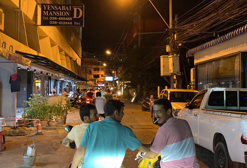 ผู้สื่อข่าวลงพื้นที่ตรวจสอบภายในซอยเย็นสบาย ซึ่งเป็นศูนย์รวมของชาวอาหรับและคูเวต ที่เดินทางเข้ามาท่องเที่ยวยังเมืองพัทยา พบกลุ่มแว้นชาวอาหรับและคูเวต รวมตัวกันปิดซอยเร่งเครื่องรถจักรยานยนต์ บีบแตรส่งเสียงดัง