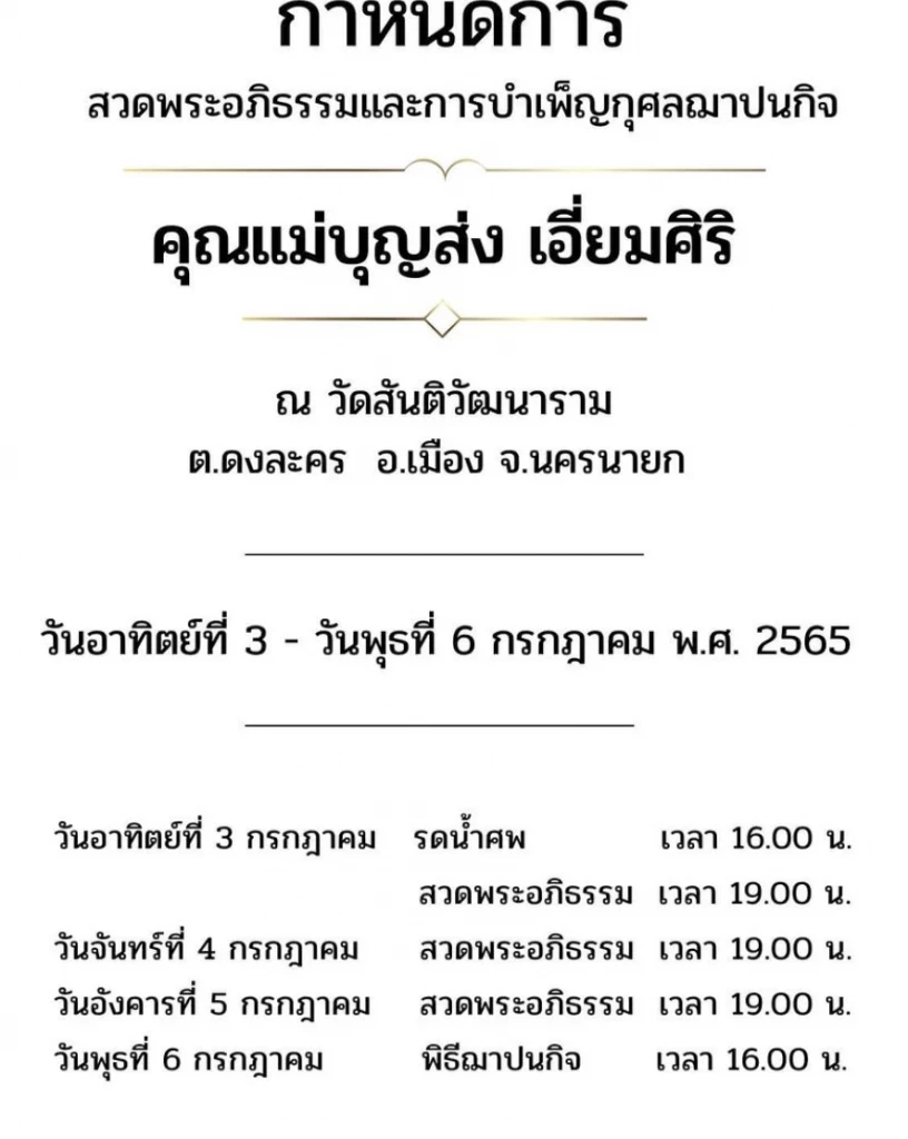 โดย ธงธง มกจ๊ก ได้โพสต์คลิปรวมโมเมนต์ที่ตนอยู่กับคุณแม่ พร้อมเขียนแคปชั่นอาลัยถึงท่านว่า