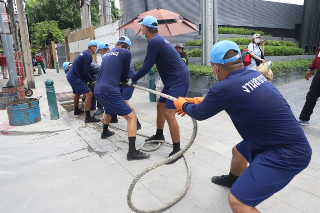 เรือนจำพิเศษกรุงเทพฯส่ง 20 ผู้ต้องขังปฏิบัติงานลอกท่อถนนเพชรบุรี แก้ปัญหาน้ำท่วม ประชาชนหยิบยื่นน้ำใจ นำขนมเครื่องดื่มมามอบให้