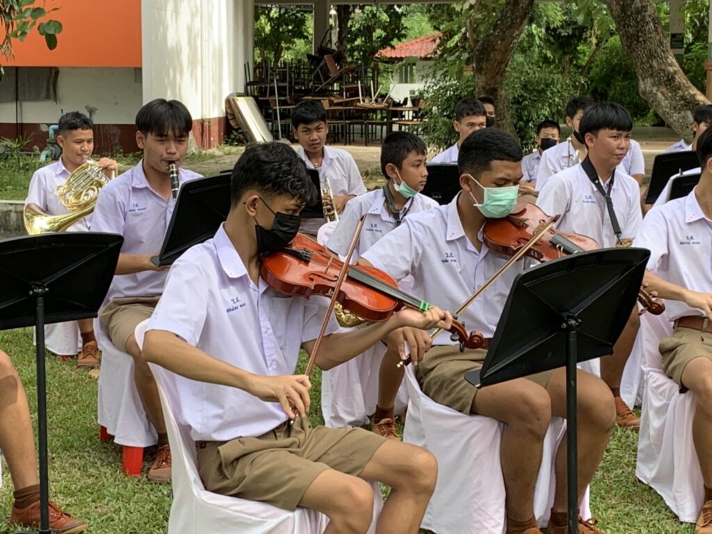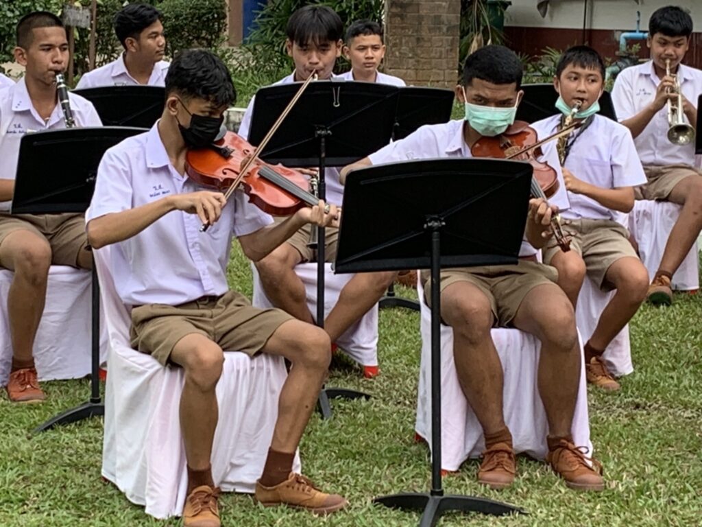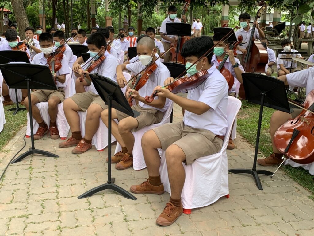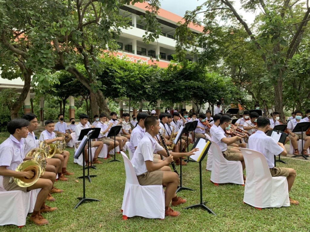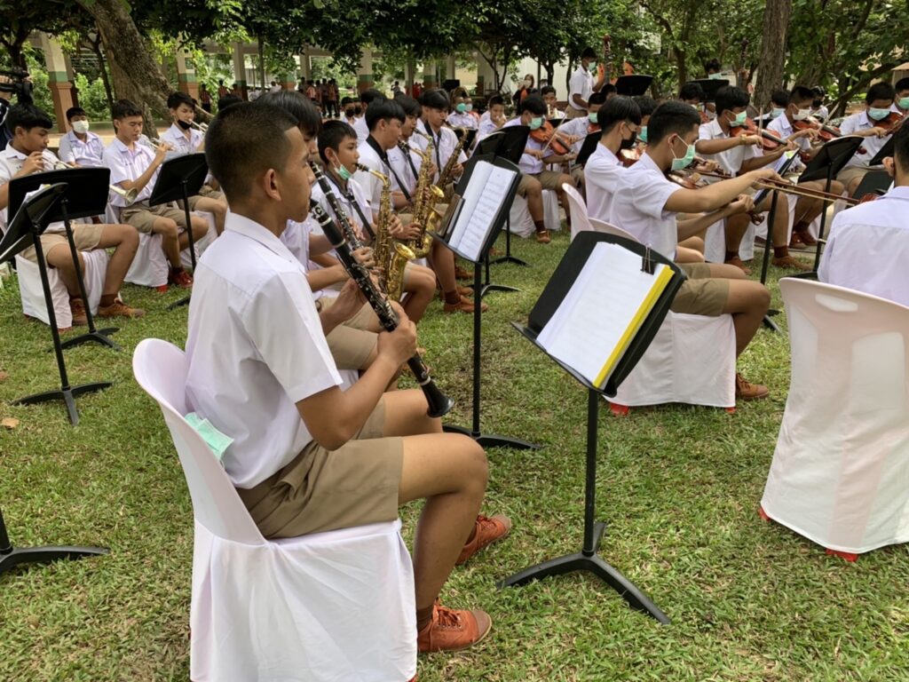 ผู้สื่อข่าวรายงานว่า ที่ บริเวณสวนหย่อมภายในโรงเรียนราชสีมาวิทยาลัย อ.เมือง จ.นครราชสีมา นักเรียนสมาชิกวงโยธวาทิตของโรงเรียนราชสีมาวิทยาลัย กว่า 80 คน ได้มีออกมาขนอุปกรณ์เครื่องดนตรีทั้งไวโอลิน แซคโซโฟน คาริเนทและอีกหลายชนิด