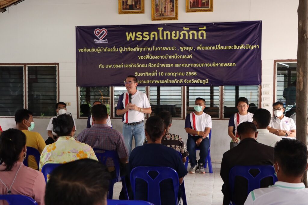 นพ.วรงค์ เดชกิจวิกรม หัวหน้าพรรคไทยภักดี พร้อมนายพุฒิพงศ์ สงวนวงศ์ชัย รองหัวหน้าพรรคและนายปฏิยุทธ ทองประจง กรรมการบริหารพรรค ลงพื้นที่จังหวัดชัยภูมิ ร่วมพบปะพูดคุยเพื่อแลกเปลี่ยนและรับฟังปัญหาของชาวบำเหน็จณรงค์ ณ สำนักงานพรรคไทยภักดี จังหวัดชัยภูมิ
