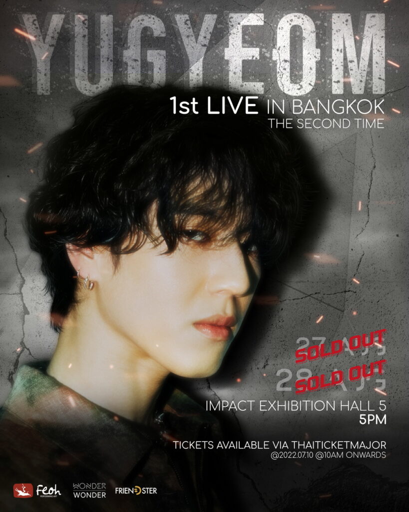 ไม่มีอะไรจะต้านทานพลังรักของเหล่าอากาเซที่มีต่อเมนและเหนือเมนอย่าง คิมยูคยอม (KIM YUGYEOM) หรือ ยูคยอม สมาชิกวง GOT7 ไปได้เลย ก็ล่าสุดที่ผู้จัดไทย เฟโอห์ (Feoh) เปิดจำหน่ายบัตรคอนเสิร์ต “2022 ยูคยอม เฟิร์ส ไลฟ์ อิน แบงคอก” (2022 YUGYEOM 1st Live in Bangkok) ซึ่งเดิมมีกำหนดการแสดงจำนวน 1 รอบในวันเสาร์ที่ 27 สิงหาคม 2565 ที่จะถึงนี้ โดยบัตรทุกที่นั่งและทุกที่ยืนถูกขายหมดเกลี้ยงภายในเวลาไม่ถึง 2 ชั่วโมง จนต้องมีการประกาศเพิ่มรอบแสดงขึ้นอีก 1 รอบในวันอาทิตย์ที่ 28 สิงหาคมตามคำเรียกร้อง ซึ่งก็ SOLD OUT อย่างรวดเร็วไม่แพ้กัน