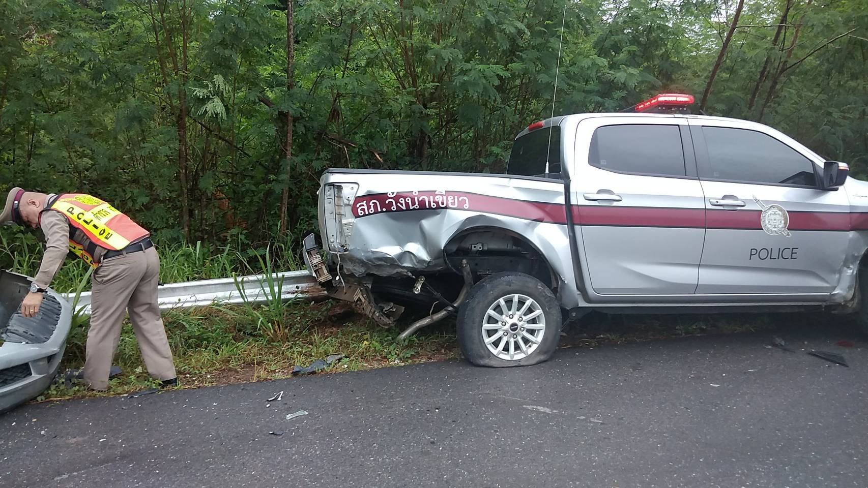 จากการตรวจสอบ ทราบว่า รถยนต์กระบะมิตซูบิชิ สีขาว คันเกิดเหตุ เสียหลักเพราะฝนตกถนนลื่นและสภาพถนนในจุดเกิดเหตุเป็นช่วงทางโค้งลงเขา ทำให้ควบคุมรถไม่อยู่ ไถลลงไปที่ร่องกลางถนนแล้วพลิกคว่ำหงายชี้ฟ้า โชคดีที่คนขับไม่ได้รับบาดเจ็บ เจ้าหน้าที่ตำรวจ สภ.วังน้ำเขียว หลังได้รับแจ้งเหตุ จึงรุดมาดูเพื่อให้ความช่วยเหลือ แต่ขณะดำเนินการ มีรถยนต์เก๋งฮอนด้า คันประสบเหตุอีกคัน เสียหลักเพราะถนนลื่น แล้วพุ่งมาชนท้ายรถตำรวจที่จอดอยู่ข้างทางอย่างแรง ก่อนจะหมุนคว้างไปกระแทกกับการ์ดเลนซ้ำแล้วกระดอนมาหยุดนิ่งอยู่ริมถนน ทำให้คนขับได้รับาดเจ็บสาหัสดังกล่าว