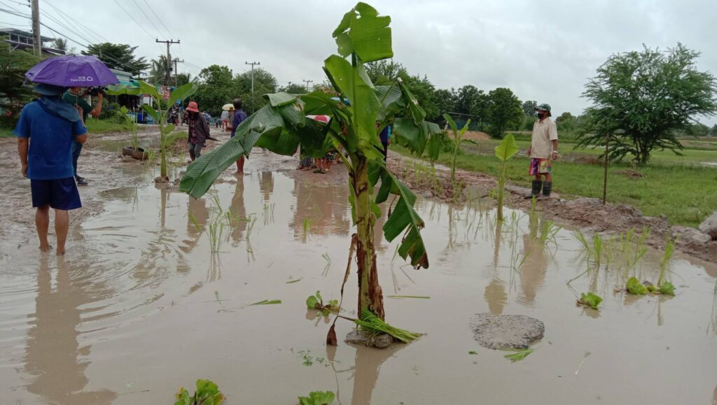 โคราช-ชาวบ้านสุดทนปลูกกล้วยลงแขกดำนา หลังถนนชำรุดไร้การเหลียวแล
