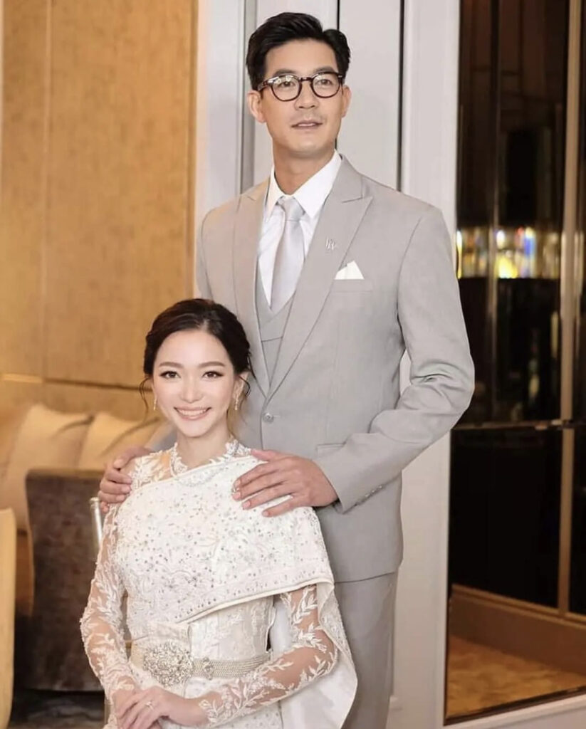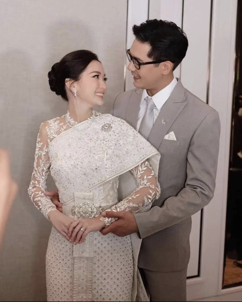โดยเวียร์มาในชุดสูทสีเทา หล่อเท่ส์ อบอุ่น เข้ากับเจ้าสาว ที่สวมชุดไทยสวยสง่าไม่แพ้กัน ซึ่งพิธีในช่วงเช้าหนุ่มเวียร์ได้ยกขันหมากสู่ขอฝ่ายหญิงตามแบบประเพณีไทย ก่อยที่จะสวมแหวน และจุ๊บแก้มเจ้าสาว เห็นแล้ว น่ารักอละอบอุ่นมากจริงๆ